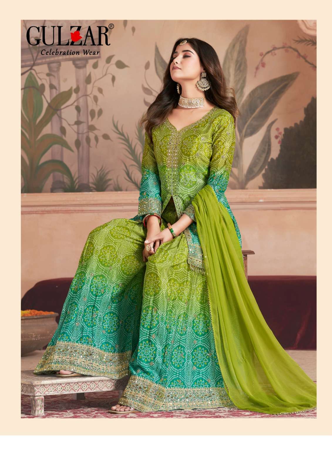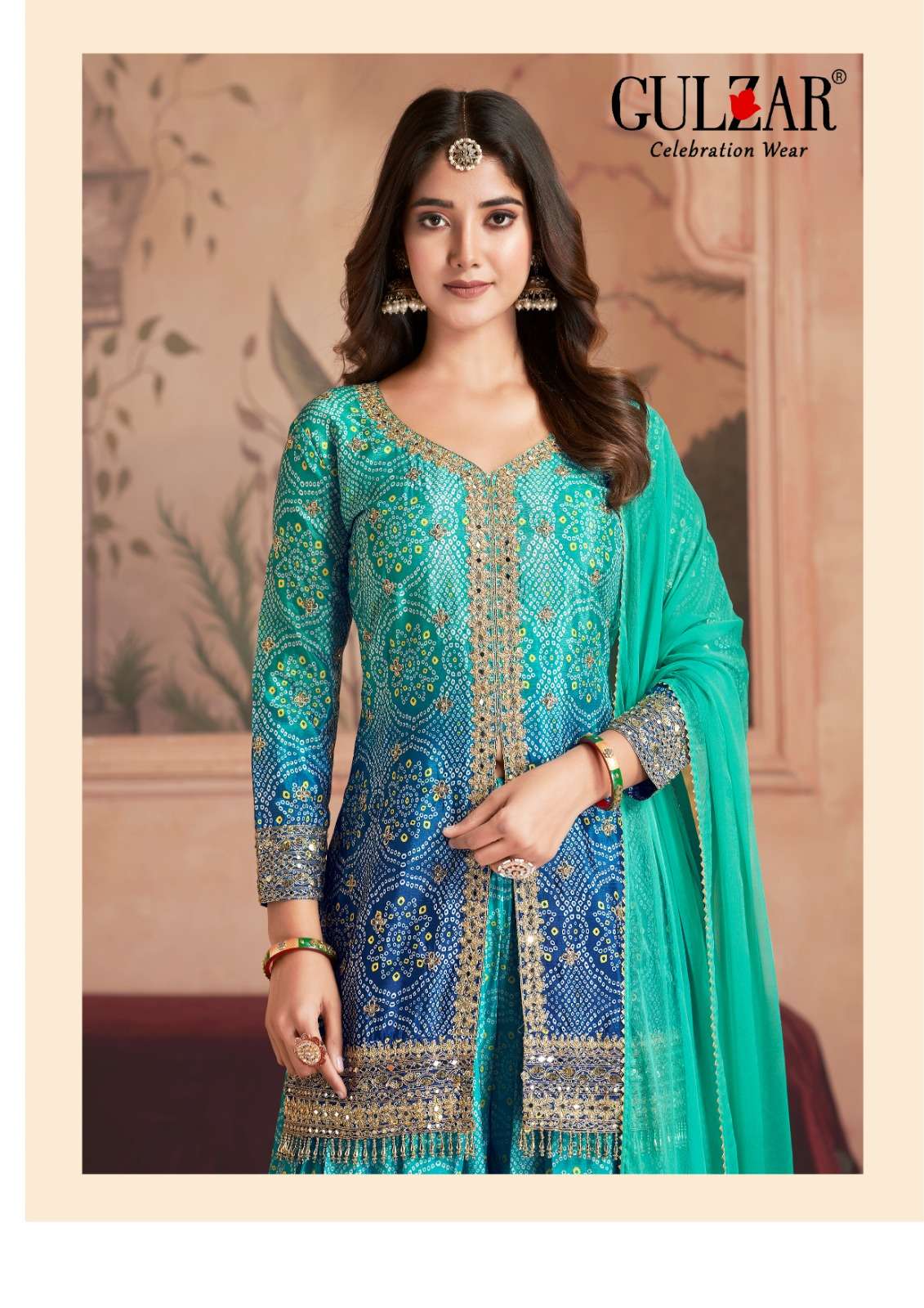Buy Online Rangeela D No 2121 2124 by Gulzar Digital Print Bandhani suit collection manufacturer surat 4 Pcs of Full Catalogue at Wholesale Price. Looking for Rangeela D No 2121 2124 by Gulzar Digital Print Bandhani suit collection manufacturer surat Full Catalouge at Best Price? Buy Now Rangeela D No 2121 2124 by Gulzar Digital Print Bandhani suit collection manufacturer surat at Wholesale Rate of Rs 9580 with Total 4 Pcs from authroized dealer and supplier of GULZAR Brand. Cost of Each piece is just only Rs 2395 which is very low and affordable price to resale the product in your retail store ,This is Surat based Wholesale Supplier & Dealer of GULZAR Brand. Click on Brand name to Know more about GULZAR Brand's products.Call or Whatsapp on 9898838984 for booking or enquiry