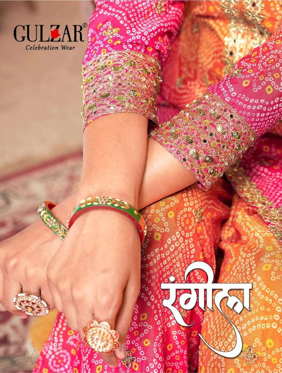 BRAND NAME – *GULZAR* CATALOG NAME – *RANGEELA* SERIES – 2121 TO 2124 4 COLOUR PER SET FREESIZE (42")Readymade Inside Marging Upto 48 inch size Fabric Top : Premium Feel Chinnon with Fine detailing Bandhani Digital Print Dupatta : Pure Viscose Chiffon Dupatta with 4 side lace and handmade Latkan border Pant :FREESIZE Sharara Plazo of Premium Feel Chinnon with Fine detailing Bandhani Digital print (Front & Back Work) WORK : Dabka Jari and Sequince Work with handmade Jharkan Stone & Mirror work embroidery and digital print RATE – 2395/- PER PCS GST 12% EXTRA *SINGLE AVAILABLE* Delivery 4-5 days BOOK YOUR ORDER NOW |