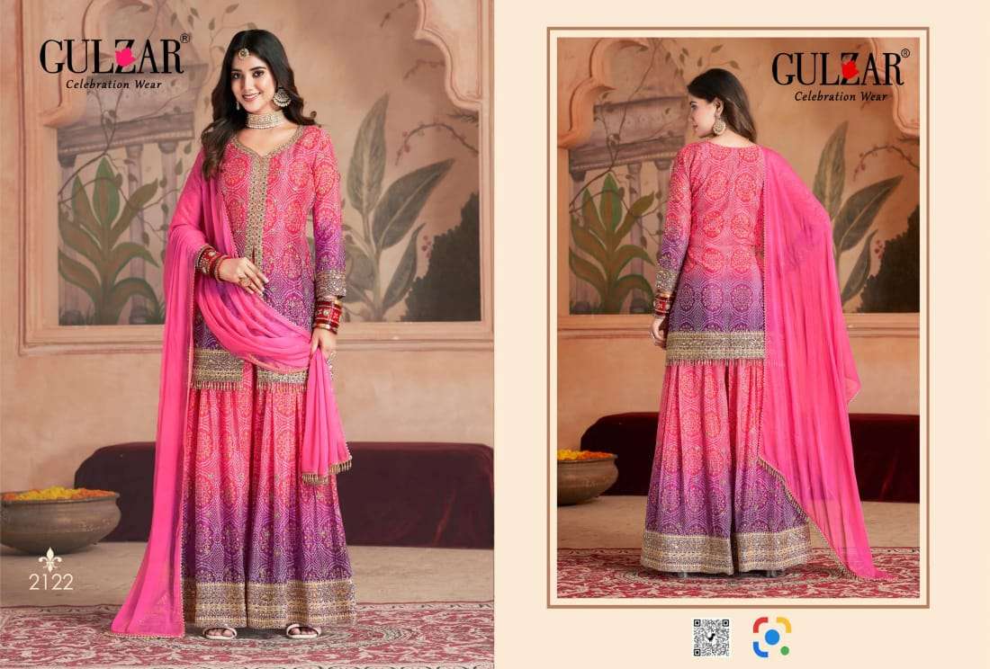Buy Online RANGEELA SERIES 2121 TO 2124 by GULZAR Digital Print Suit collection manufacturer surat 4 Pcs of Full Catalogue at Wholesale Price. Looking for RANGEELA SERIES 2121 TO 2124 by GULZAR Digital Print Suit collection manufacturer surat Full Catalouge at Best Price? Buy Now RANGEELA SERIES 2121 TO 2124 by GULZAR Digital Print Suit collection manufacturer surat at Wholesale Rate of Rs 9580 with Total 4 Pcs from authroized dealer and supplier of GULZAR Brand. Cost of Each piece is just only Rs 2395 which is very low and affordable price to resale the product in your retail store ,This is Surat based Wholesale Supplier & Dealer of GULZAR Brand. Click on Brand name to Know more about GULZAR Brand's products.Call or Whatsapp on 9898838984 for booking or enquiry