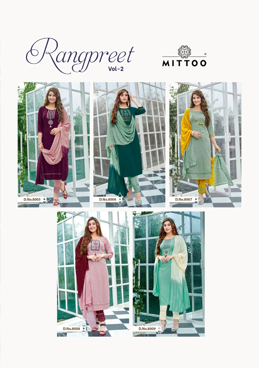 Buy Online Rangpreet Vol 2 By Mittoo Wholesaler Supplier From Surat 5 Pcs of Full Catalogue at Wholesale Price. Looking for Rangpreet Vol 2 By Mittoo Wholesaler Supplier From Surat Full Catalouge at Best Price? Buy Now Rangpreet Vol 2 By Mittoo Wholesaler Supplier From Surat at Wholesale Rate of Rs 4975 with Total 5 Pcs from authroized dealer and supplier of MITTOO Brand. Cost of Each piece is just only Rs 995 which is very low and affordable price to resale the product in your retail store ,This is Surat based Wholesale Supplier & Dealer of MITTOO Brand. Click on Brand name to Know more about MITTOO Brand's products.Call or Whatsapp on 9898838984 for booking or enquiry