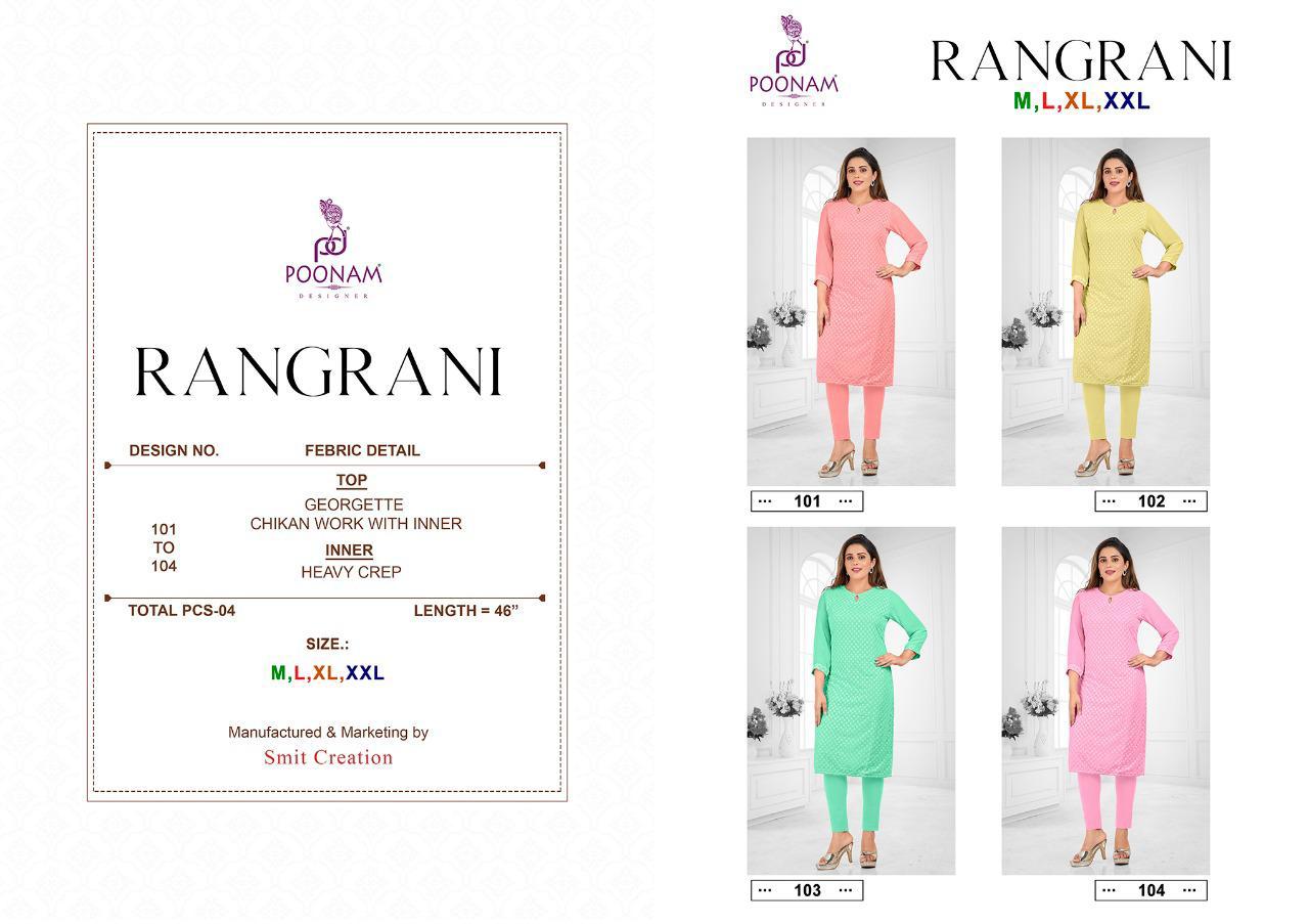 Buy Online Rangrani By Poonam Designer Manufacturer Traders And Dealer From India 4 Pcs of Full Catalogue at Wholesale Price. Looking for Rangrani By Poonam Designer Manufacturer Traders And Dealer From India Full Catalouge at Best Price? Buy Now Rangrani By Poonam Designer Manufacturer Traders And Dealer From India at Wholesale Rate of Rs 1596 with Total 4 Pcs from authroized dealer and supplier of Poonam designer Brand. Cost of Each piece is just only Rs 399 which is very low and affordable price to resale the product in your retail store ,This is Surat based Wholesale Supplier & Dealer of Poonam designer Brand. Click on Brand name to Know more about Poonam designer Brand's products.Call or Whatsapp on 9898838984 for booking or enquiry