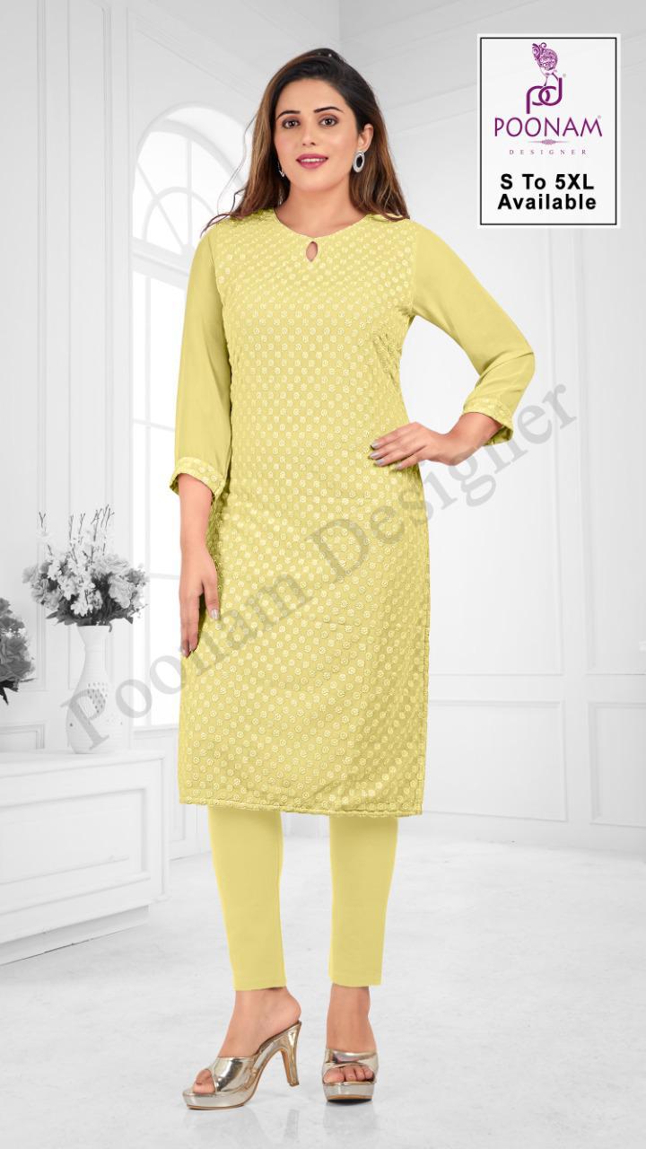 *Poonam Designer®?*??? (Smit creation) � *RangRani*� Top (kurti)? - Georgette Chikan work With inner. Inner - Heavy crep. Length = 44� Size :- M,L,XL,XXL. Dispach - 29/07/21 (Thursday) *? 399/-* per pcs . Set to set |