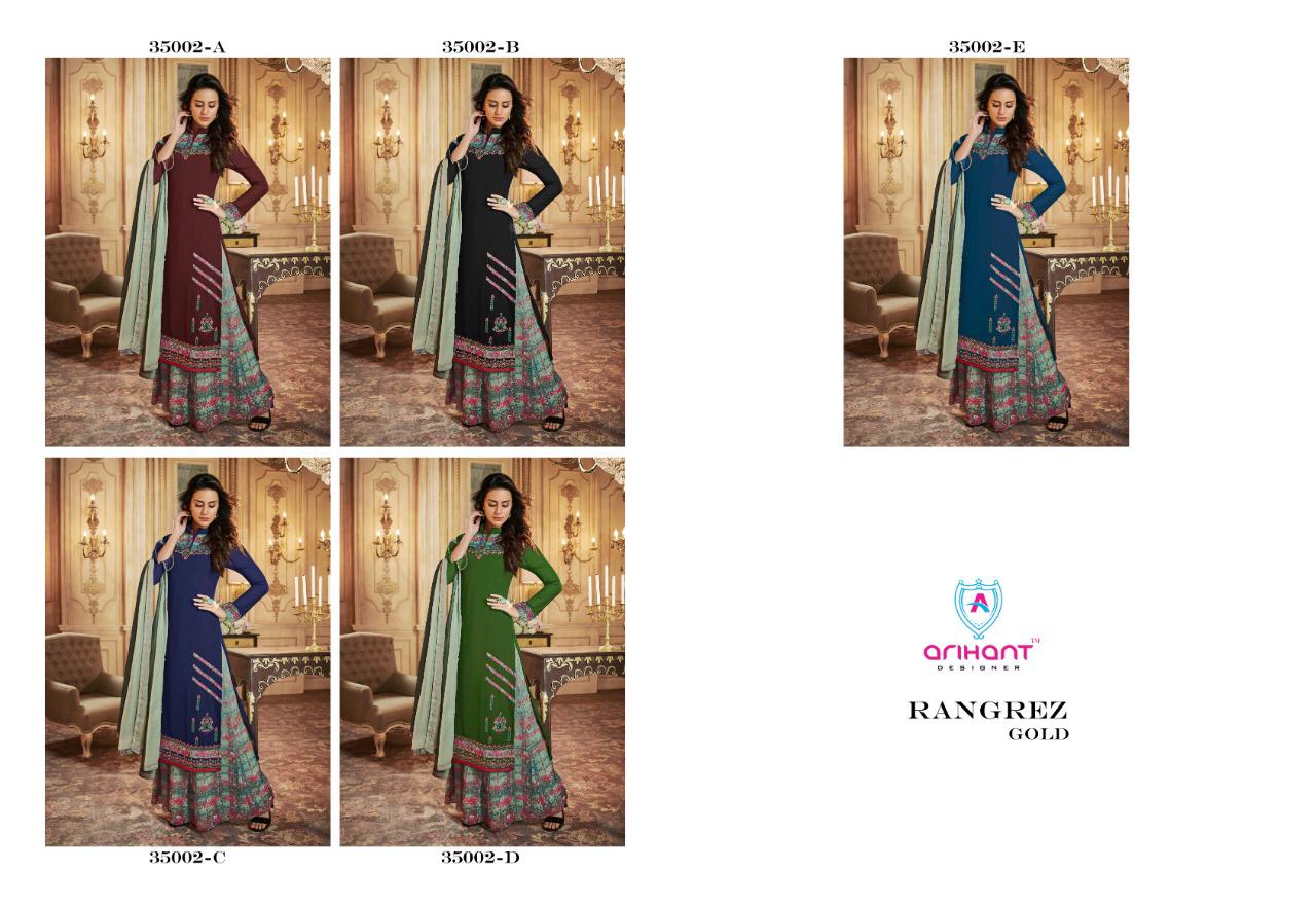 Rangrez Gold By Arihant Designer Series 35002 A To 35002 E Georgette Printed Suits Wholesale Supplier Gujarat