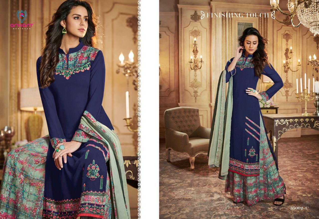 ARIHANT DESIGNER Present New Catlog ?RANGREZ Gold? ? FabRics Detail? ?Top:-Apple Jorgat With Apple Jorget Print Semi Stich Plazo:-Apple jorget Print Full Stich Free Size ?Inner&Bottom:-Dull Santoon Duppta:-Narzling Des.5 Pcs Rate-1?1?9?5?/- *Singles*? ? 1295 /- GSt 5 Percent Extra. 35002 A to 35002 E. * set & Loose * Disptch Date 3-4 days . Regard:- Arihant Designer |