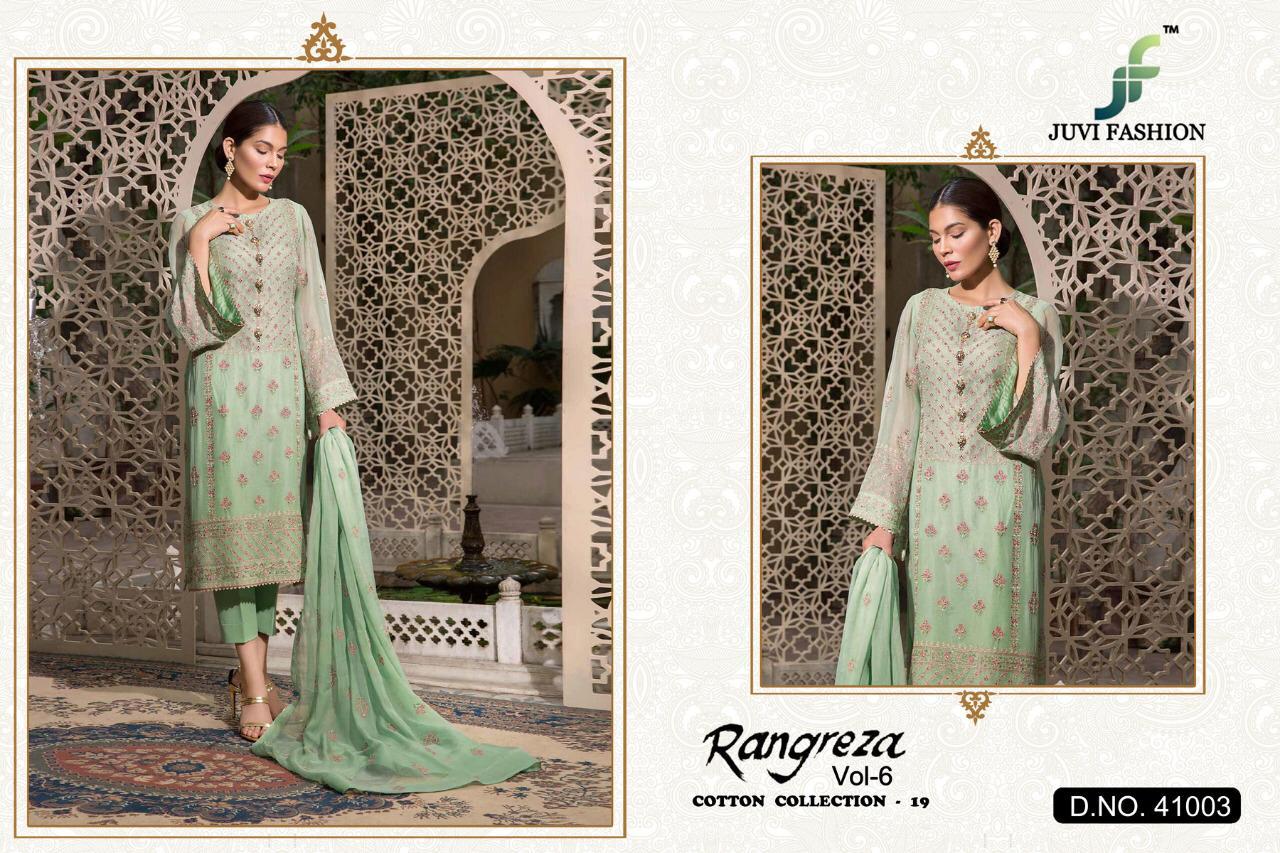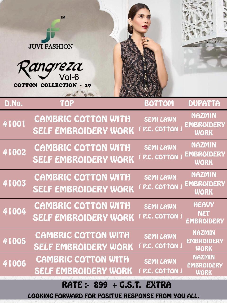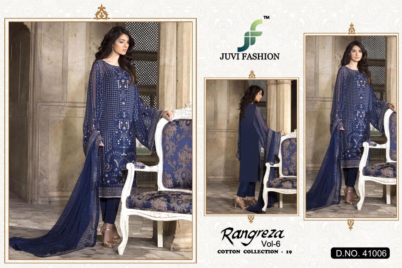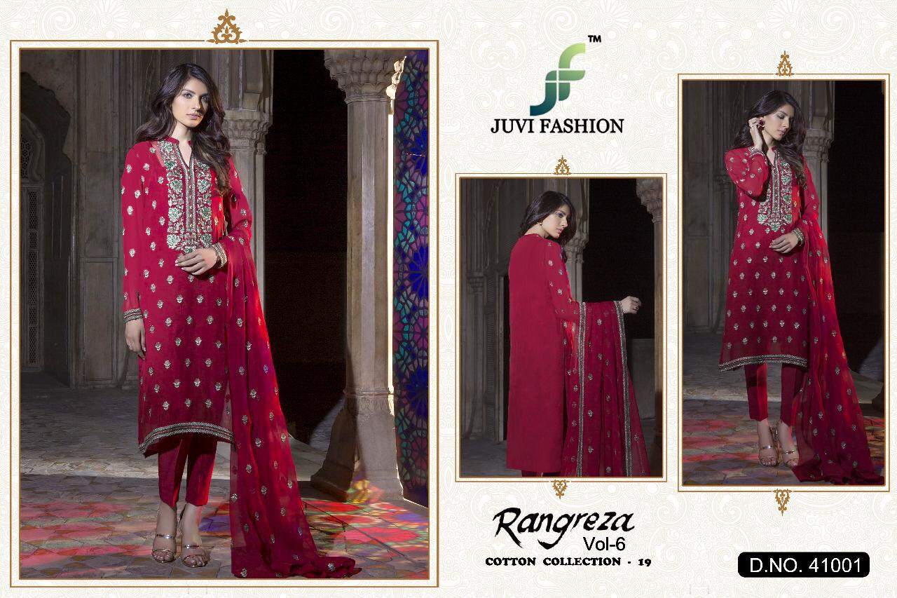 Buy Online Rangreza Vol 6 By Juvi Fashion 41001 Series Fancy Cambric Cotton Pakistani Salwar Kameez Catlog Wholesaler Surat 6 Pcs of Full Catalogue at Wholesale Price. Looking for Rangreza Vol 6 By Juvi Fashion 41001 Series Fancy Cambric Cotton Pakistani Salwar Kameez Catlog Wholesaler Surat Full Catalouge at Best Price? Buy Now Rangreza Vol 6 By Juvi Fashion 41001 Series Fancy Cambric Cotton Pakistani Salwar Kameez Catlog Wholesaler Surat at Wholesale Rate of Rs 5394 with Total 6 Pcs from authroized dealer and supplier of Brand. Cost of Each piece is just only Rs 899 which is very low and affordable price to resale the product in your retail store ,This is Surat based Wholesale Supplier & Dealer of Brand. Click on Brand name to Know more about Brand's products.Call or Whatsapp on 9898838984 for booking or enquiry