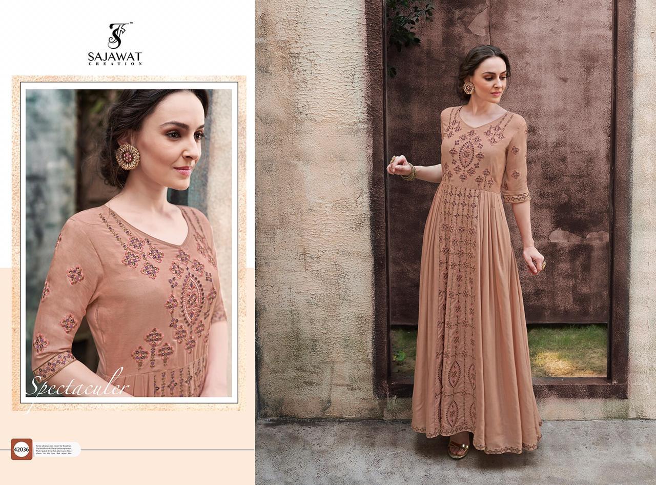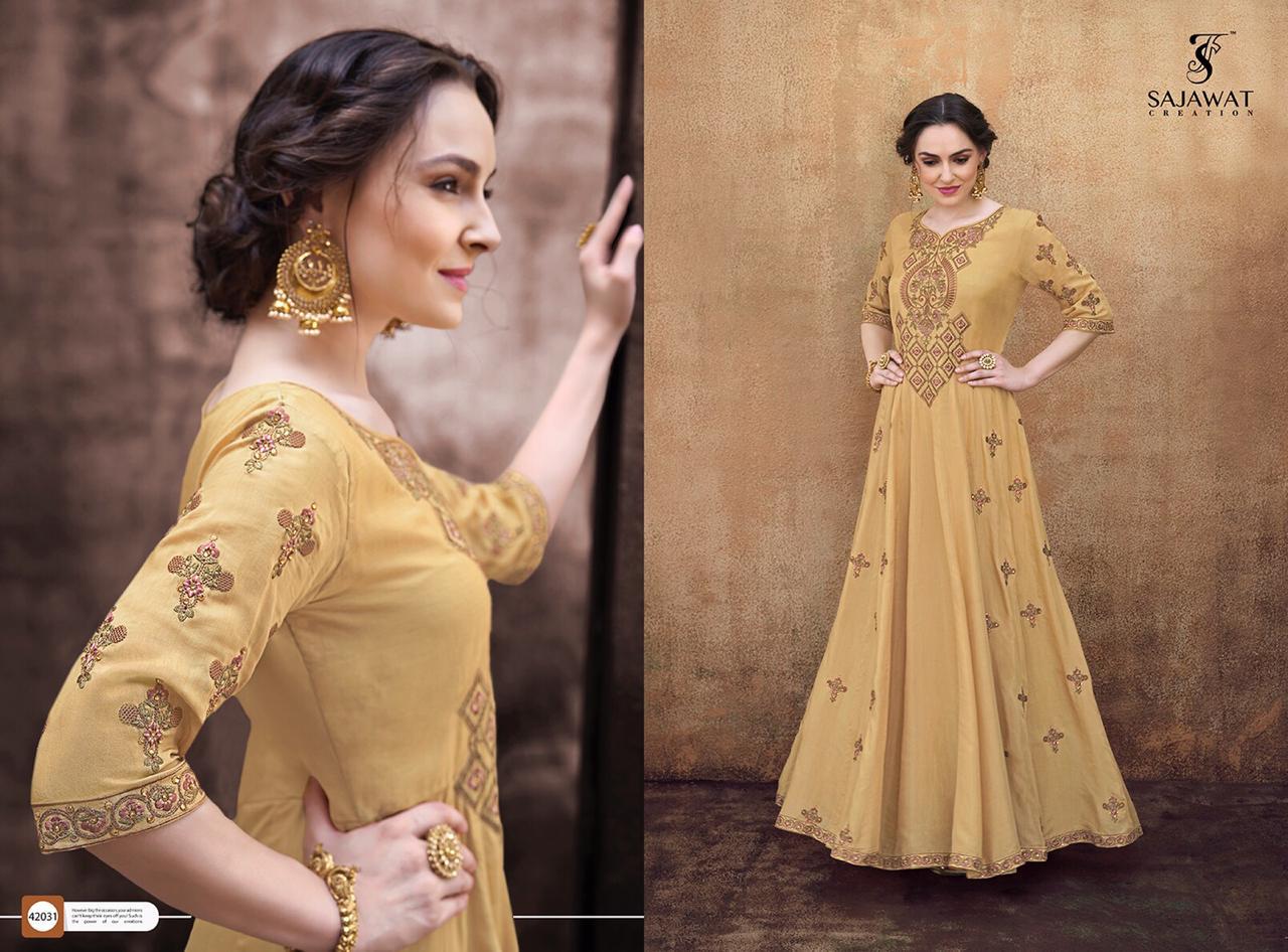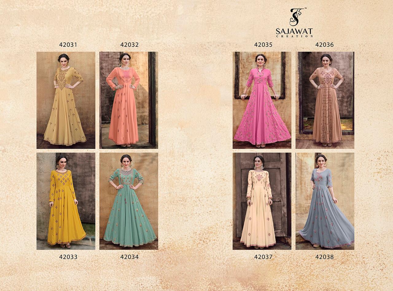 Buy Online Rangriti By Sajawat 42031 Series Fancy Designer Gown Collection Wholesale Dealer Surat 8 Pcs of Full Catalogue at Wholesale Price. Looking for Rangriti By Sajawat 42031 Series Fancy Designer Gown Collection Wholesale Dealer Surat Full Catalouge at Best Price? Buy Now Rangriti By Sajawat 42031 Series Fancy Designer Gown Collection Wholesale Dealer Surat at Wholesale Rate of Rs 10200 with Total 8 Pcs from authroized dealer and supplier of SAJAWAT Brand. Cost of Each piece is just only Rs 1275 which is very low and affordable price to resale the product in your retail store ,This is Surat based Wholesale Supplier & Dealer of SAJAWAT Brand. Click on Brand name to Know more about SAJAWAT Brand's products.Call or Whatsapp on 9898838984 for booking or enquiry