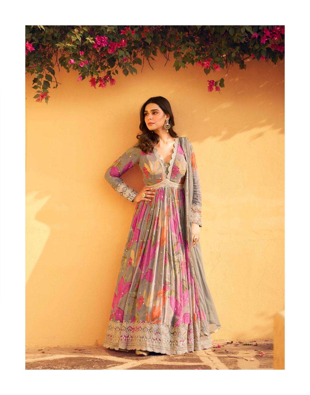 FABRIC - PREMIUM REAL CHINON SILK ( HEAVY LOOK FRONT AND BACK EMBROIDERED WITH DUPATTA )