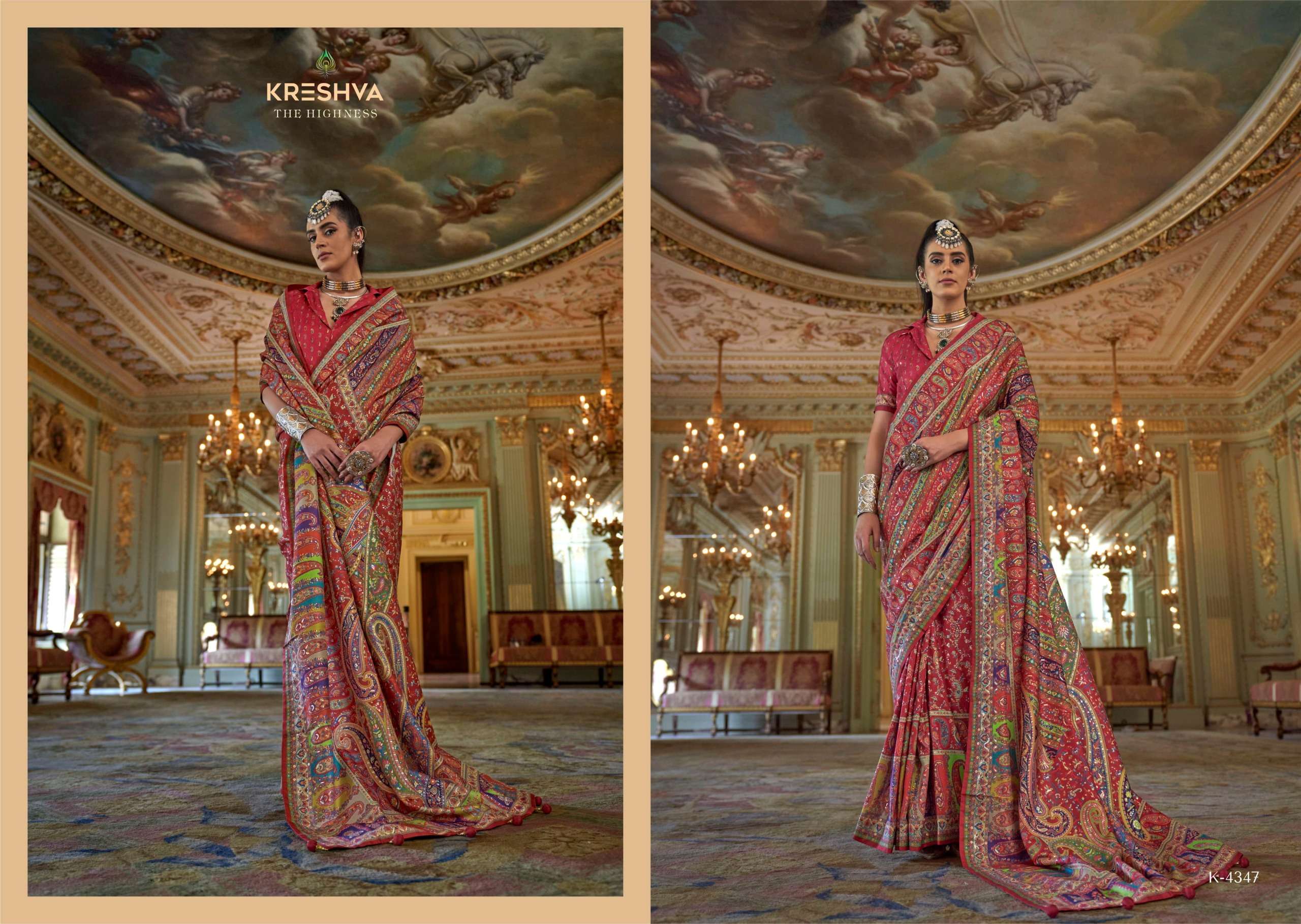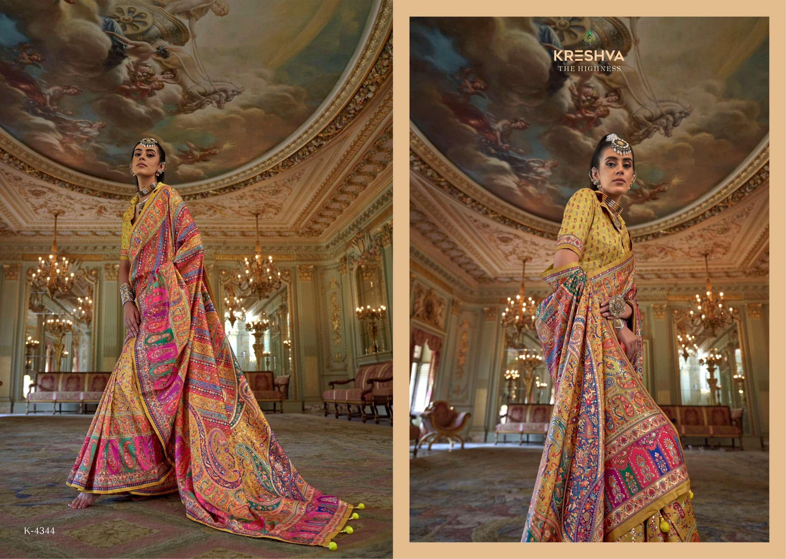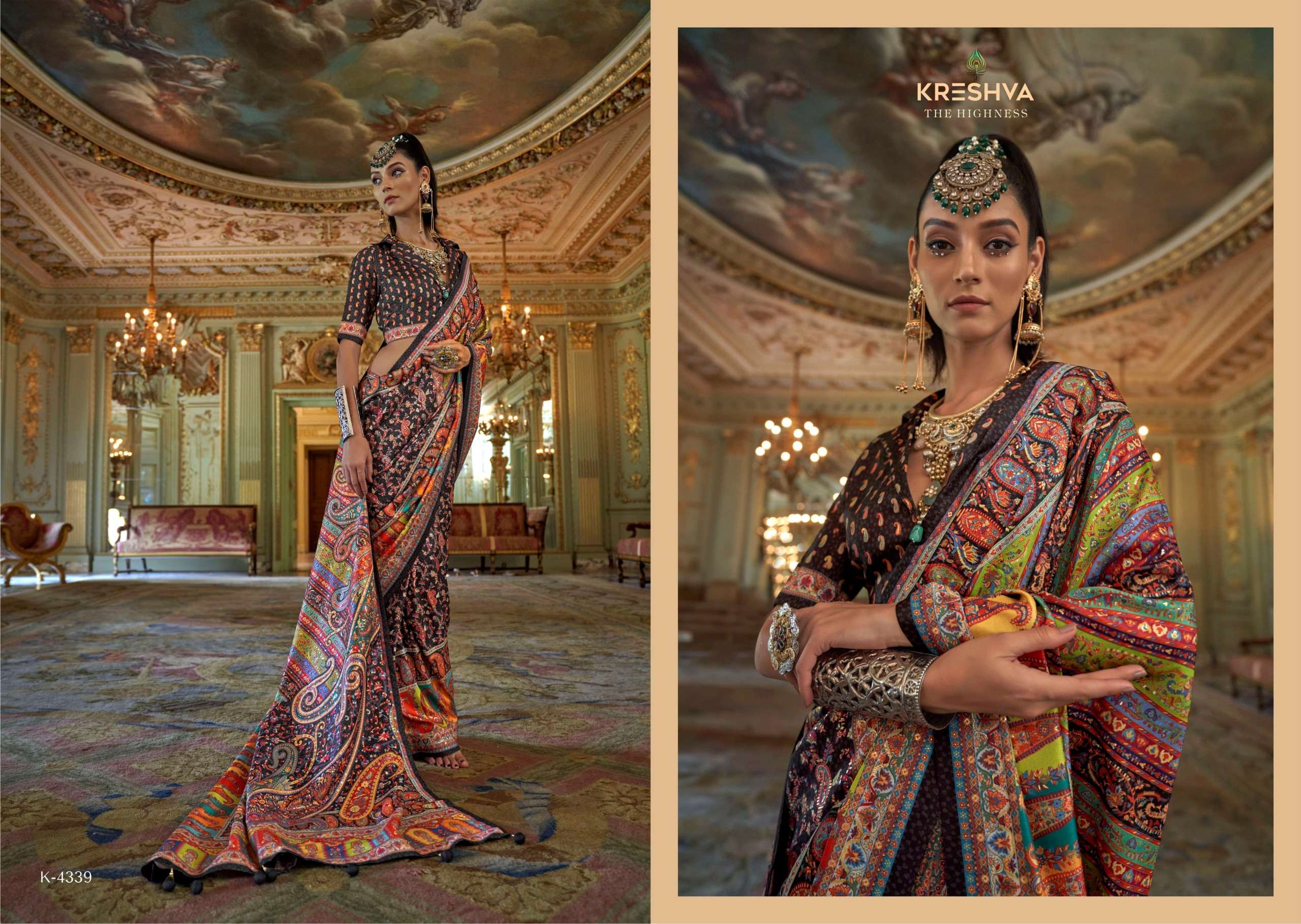 Buy Online Rani Mahal Series 4336 To 4347 by Kreshva saree Collection manufacturer surat 12 Pcs of Full Catalogue at Wholesale Price. Looking for Rani Mahal Series 4336 To 4347 by Kreshva saree Collection manufacturer surat Full Catalouge at Best Price? Buy Now Rani Mahal Series 4336 To 4347 by Kreshva saree Collection manufacturer surat at Wholesale Rate of Rs 21540 with Total 12 Pcs from authroized dealer and supplier of KRESHVA Brand. Cost of Each piece is just only Rs 1795 which is very low and affordable price to resale the product in your retail store ,This is Surat based Wholesale Supplier & Dealer of KRESHVA Brand. Click on Brand name to Know more about KRESHVA Brand's products.Call or Whatsapp on 9898838984 for booking or enquiry