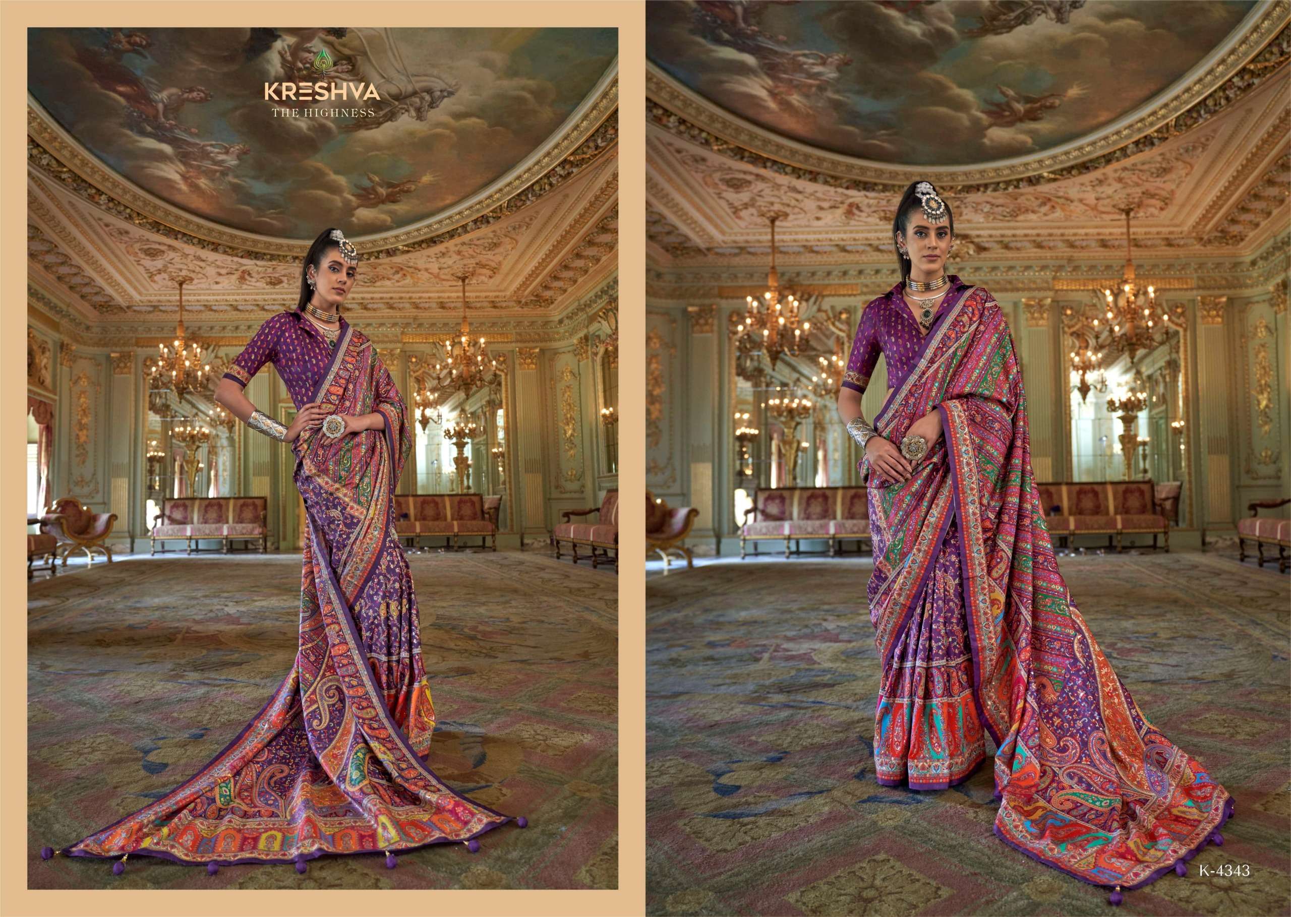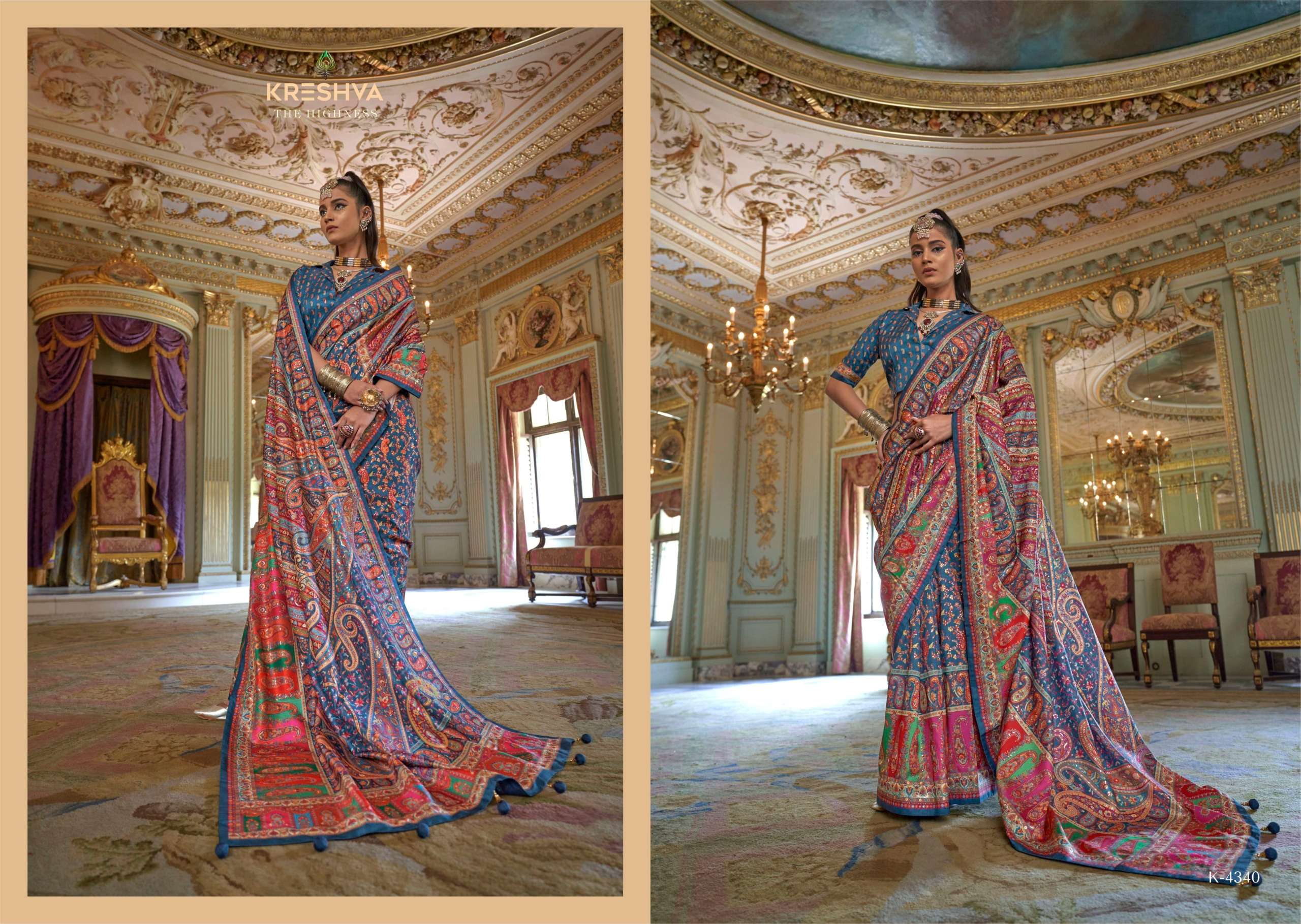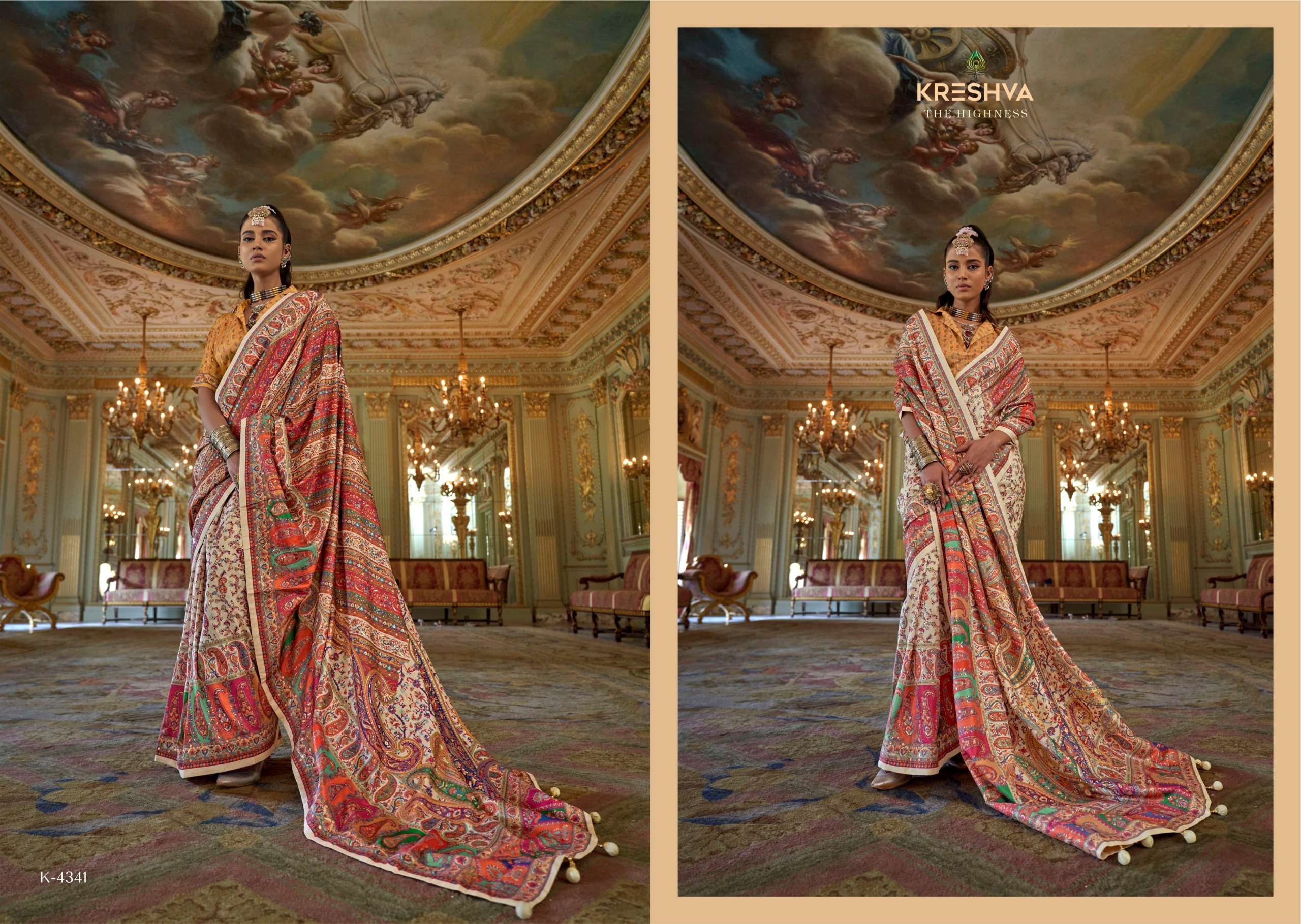 Buy Online Rani Mahal Series 4336 To 4347 by Kreshva saree Collection manufacturer surat 12 Pcs of Full Catalogue at Wholesale Price. Looking for Rani Mahal Series 4336 To 4347 by Kreshva saree Collection manufacturer surat Full Catalouge at Best Price? Buy Now Rani Mahal Series 4336 To 4347 by Kreshva saree Collection manufacturer surat at Wholesale Rate of Rs 21540 with Total 12 Pcs from authroized dealer and supplier of KRESHVA Brand. Cost of Each piece is just only Rs 1795 which is very low and affordable price to resale the product in your retail store ,This is Surat based Wholesale Supplier & Dealer of KRESHVA Brand. Click on Brand name to Know more about KRESHVA Brand's products.Call or Whatsapp on 9898838984 for booking or enquiry