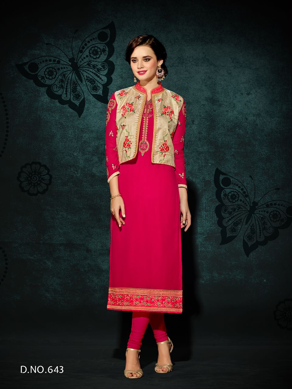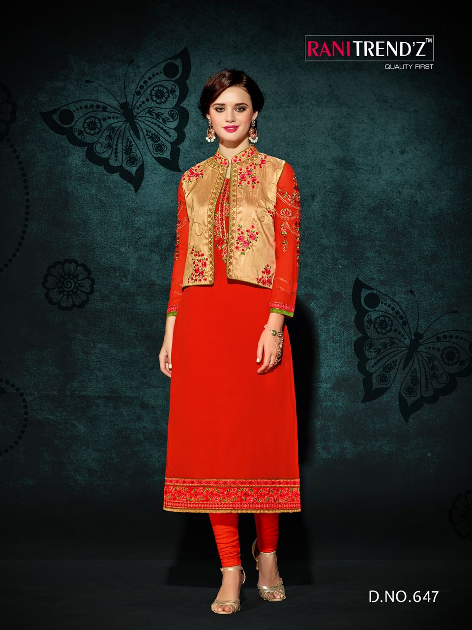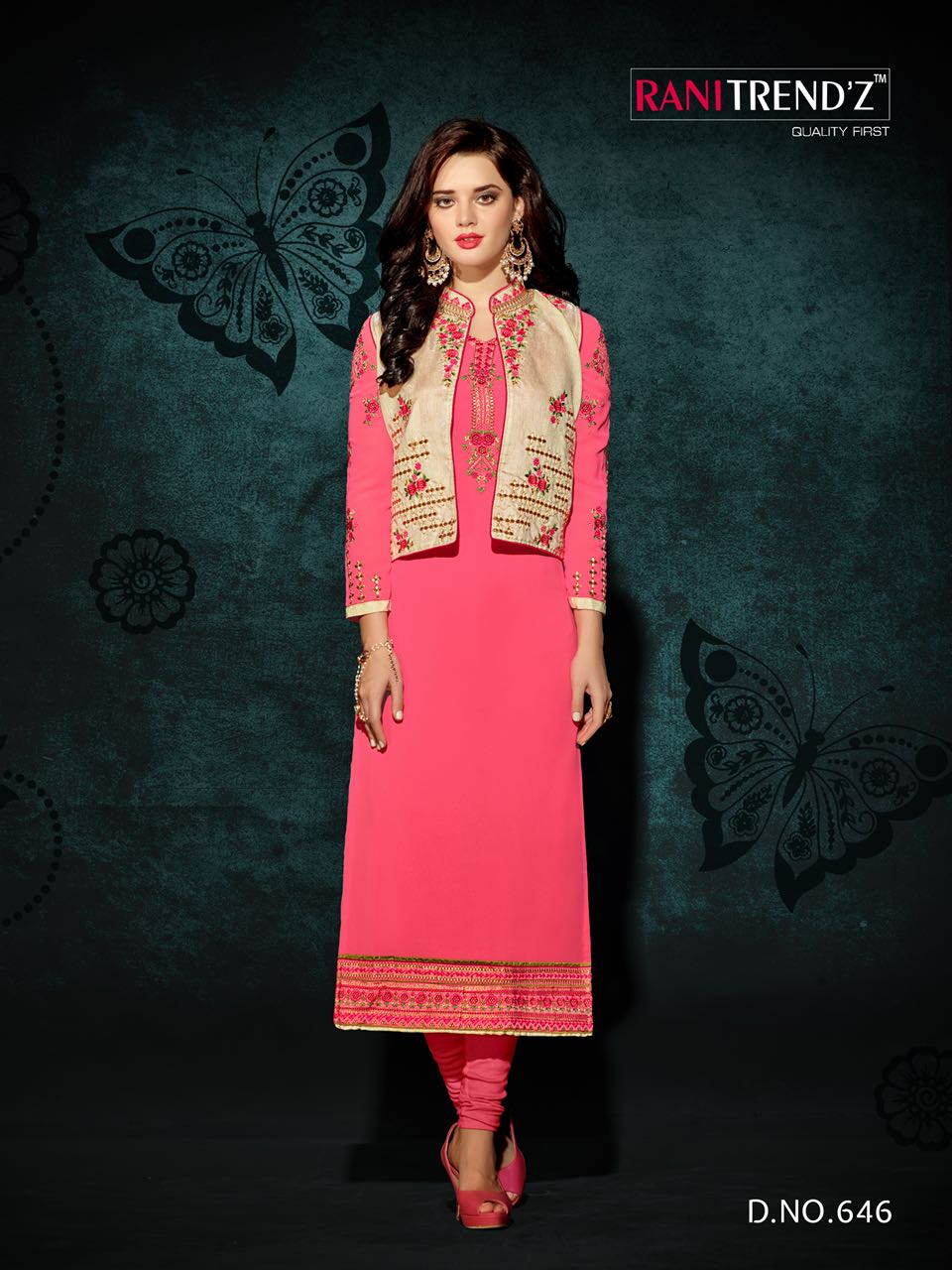 RANI TRENDZ SURAT LOUNCHING...... IN FOAX JORJAT FABRICS WITH EMB. WORK JACKET FULL STICHED KURTIES CatlogÂ?Â?Â?Â?ENGAGE(NX) FabricsÂ?Â?Â?-FOAX JORJAT INNER. SANTOON SILK JACKET SATIN BANGLORI SILK desÂ?Â?Â?Â?Â?Â?4 pcs RateÂ?Â?Â?Â?Â?-695/- Set to set . GST 5 Percent Extra. SizeÂ?Â?Â?Â?Â?Â?M-L-XL |
