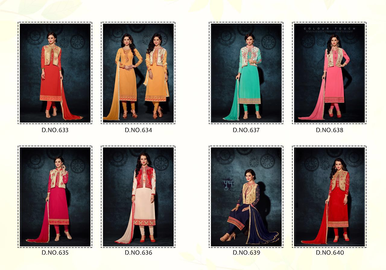 RANI TRENDZ Present new catlog....... RUBAB Fabric details Top : HEAVY FOAX Georgette Heavy santoon silk Dupatta : Najmeen chiffon JACKET : Satin banglori silk Designs :8 Rate :- 1195/- Set to set . GST 5 Percent Extra. Book your order. |