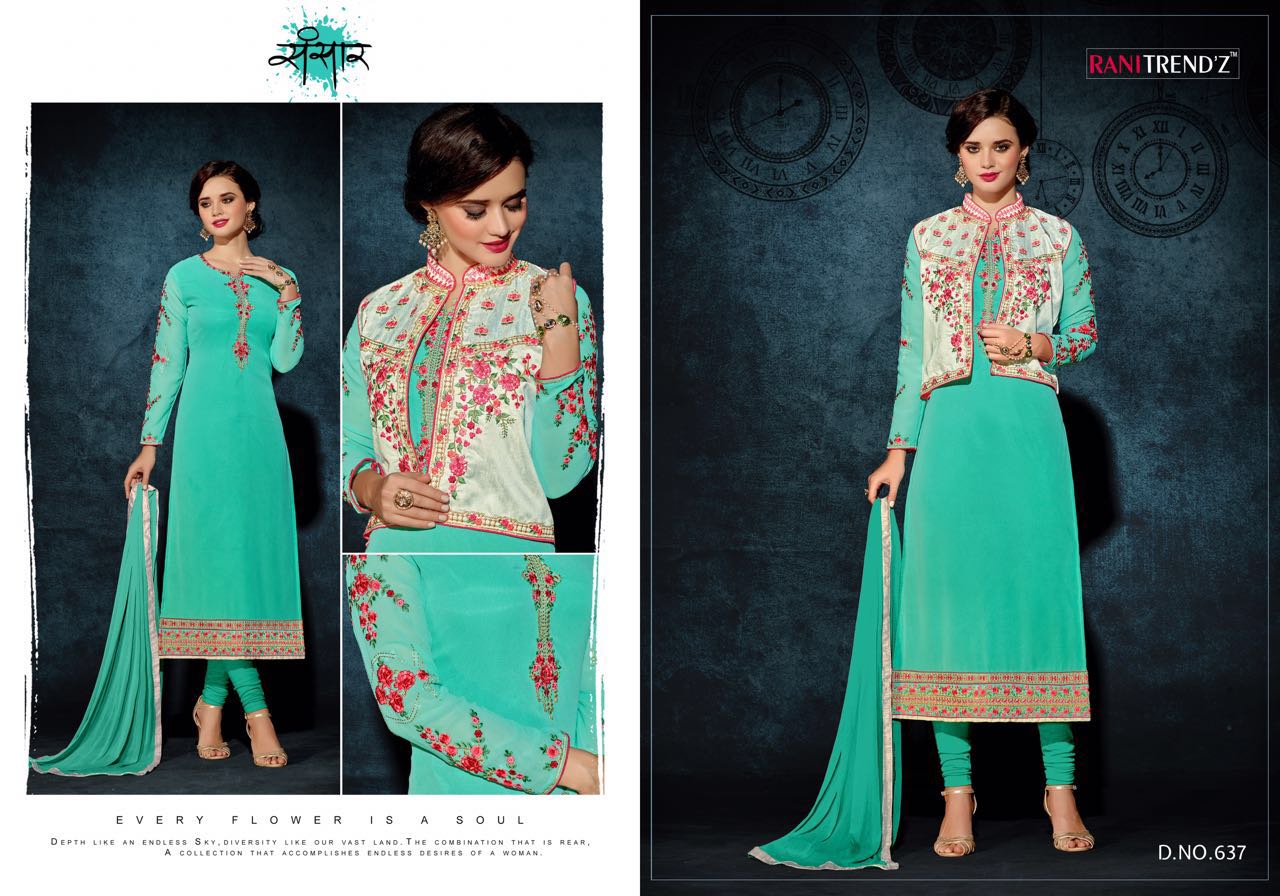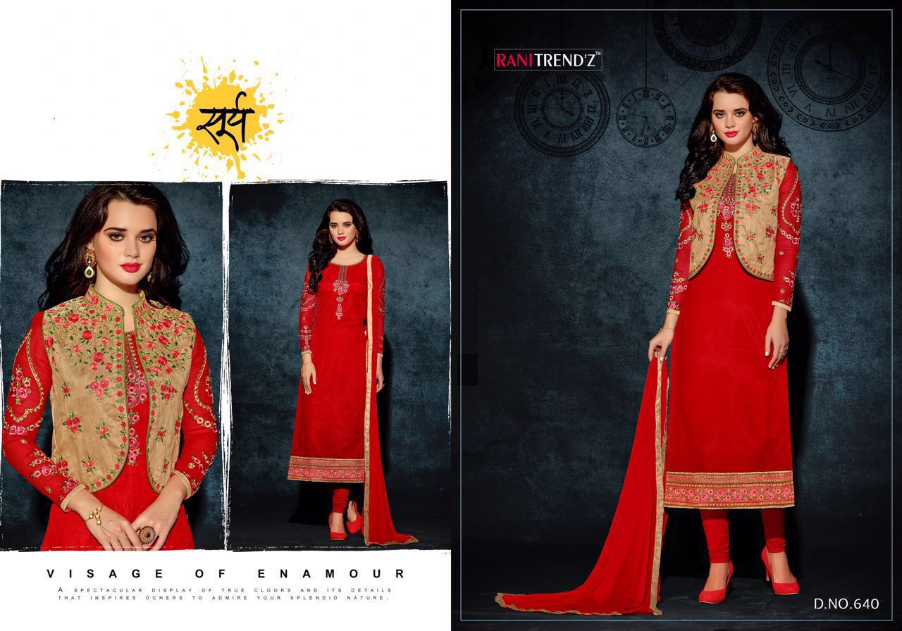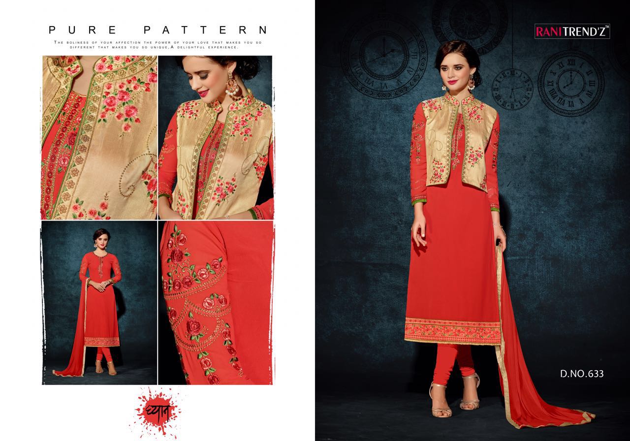 Buy Online Rani Trendz Rubab 633 To 640 Series Fancy Fox Georgette Suit 8 Pcs of Full Catalogue at Wholesale Price. Looking for Rani Trendz Rubab 633 To 640 Series Fancy Fox Georgette Suit Full Catalouge at Best Price? Buy Now Rani Trendz Rubab 633 To 640 Series Fancy Fox Georgette Suit at Wholesale Rate of Rs 9560 with Total 8 Pcs from authroized dealer and supplier of RANI TRENDZ Brand. Cost of Each piece is just only Rs 1195 which is very low and affordable price to resale the product in your retail store ,This is Surat based Wholesale Supplier & Dealer of RANI TRENDZ Brand. Click on Brand name to Know more about RANI TRENDZ Brand's products.Call or Whatsapp on 9898838984 for booking or enquiry
