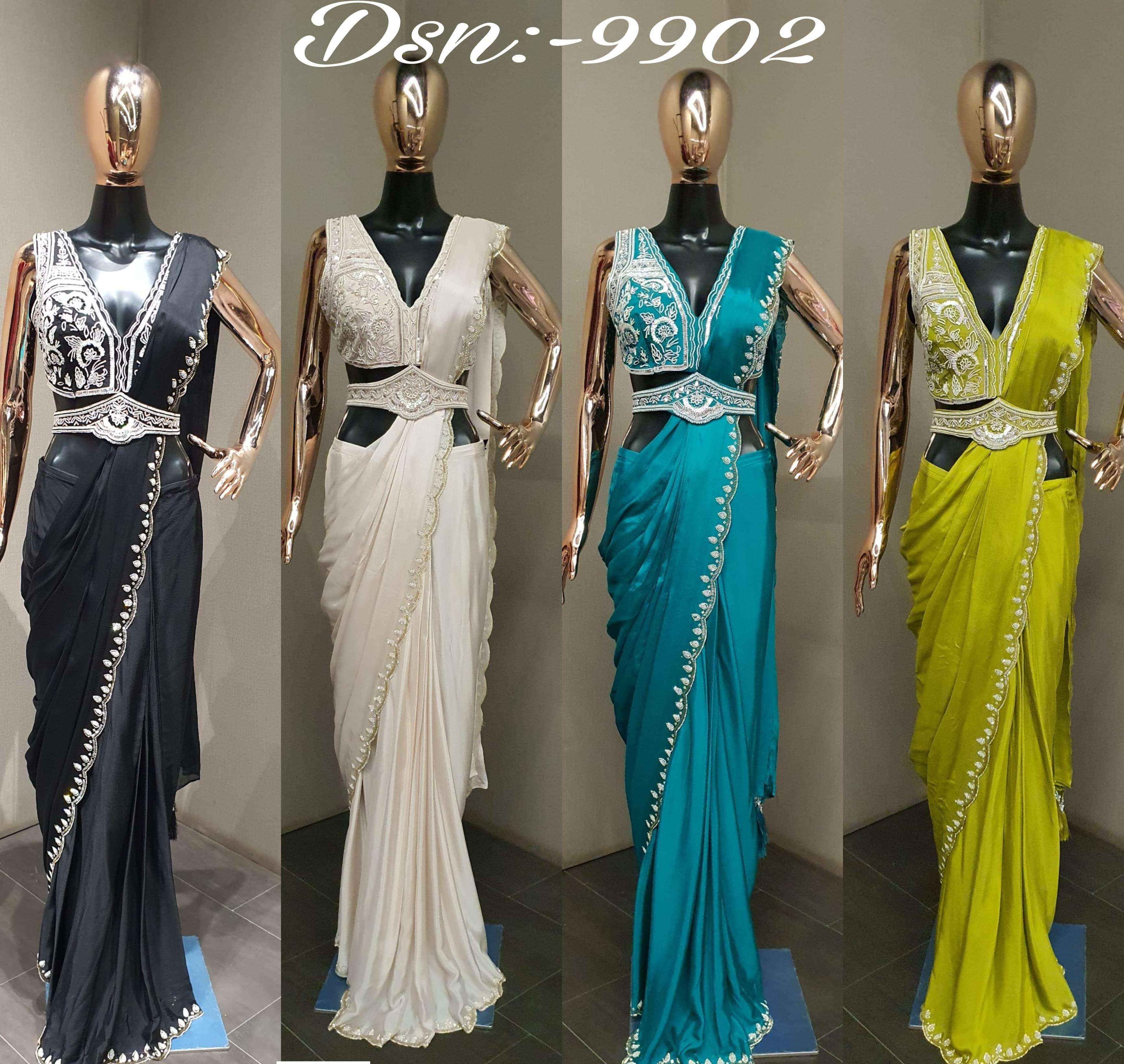 Rapron Saree with stone and bids work over Chinon Fabric and complete Hand work blouse 💫