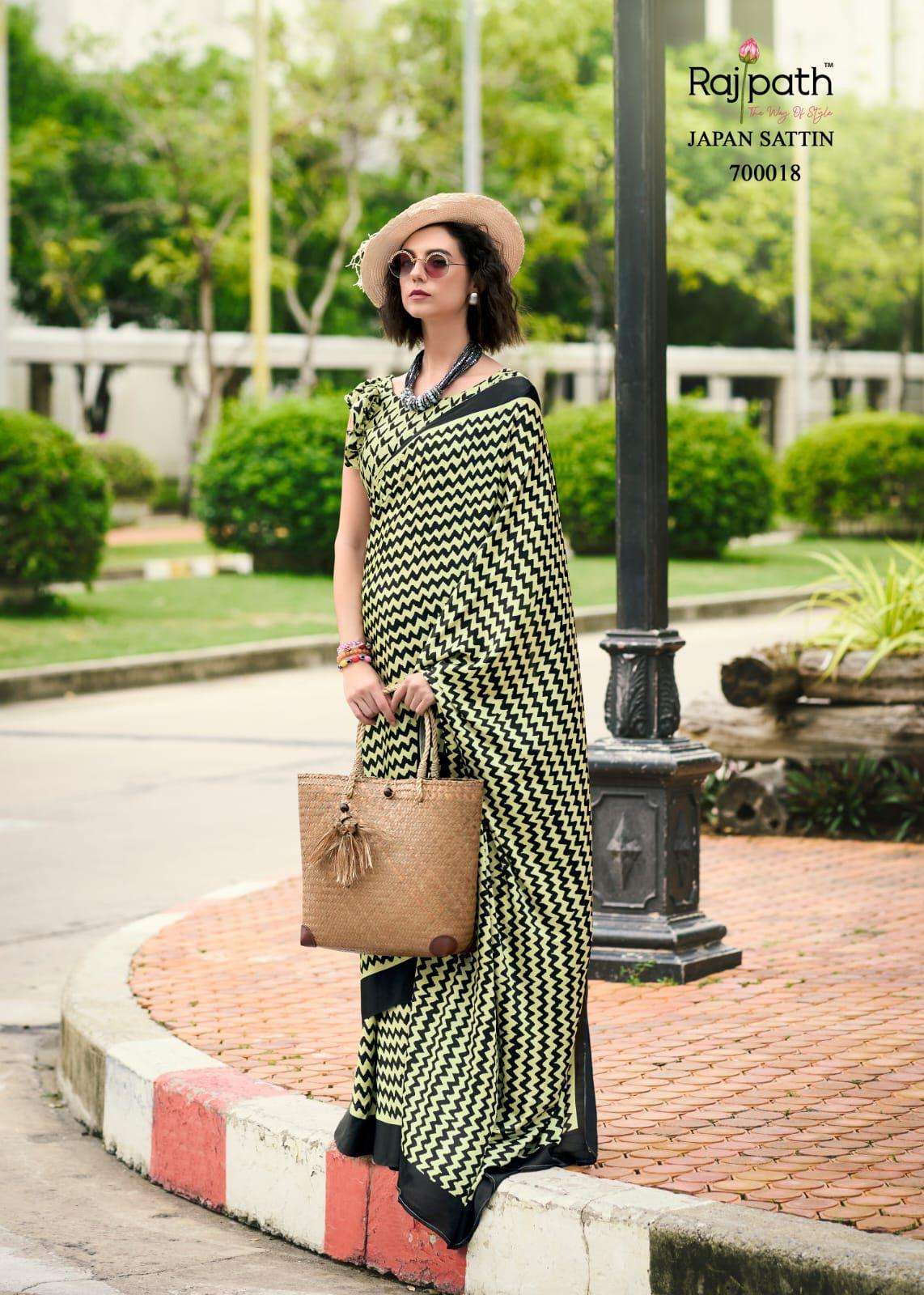 Buy Online Rare Rabbit by rajpath Japan Sattin Saree collection manufacturer surat 11 Pcs of Full Catalogue at Wholesale Price. Looking for Rare Rabbit by rajpath Japan Sattin Saree collection manufacturer surat Full Catalouge at Best Price? Buy Now Rare Rabbit by rajpath Japan Sattin Saree collection manufacturer surat at Wholesale Rate of Rs 6325 with Total 11 Pcs from authroized dealer and supplier of Rajpath Fabric Brand. Cost of Each piece is just only Rs 575 which is very low and affordable price to resale the product in your retail store ,This is Surat based Wholesale Supplier & Dealer of Rajpath Fabric Brand. Click on Brand name to Know more about Rajpath Fabric Brand's products.Call or Whatsapp on 9898838984 for booking or enquiry