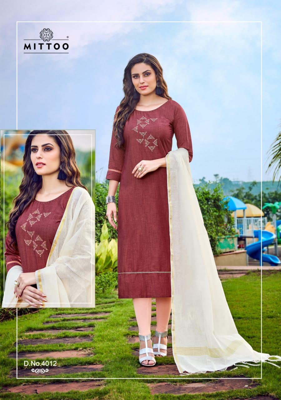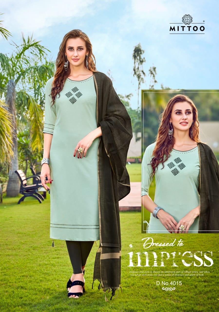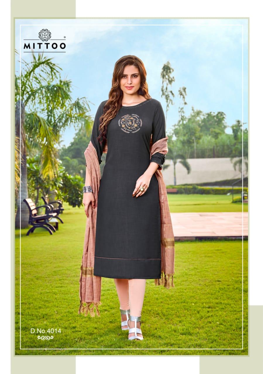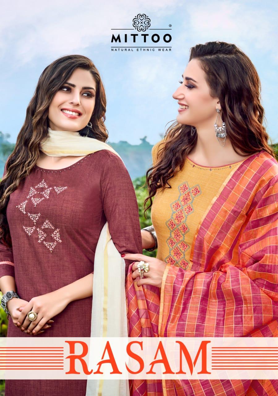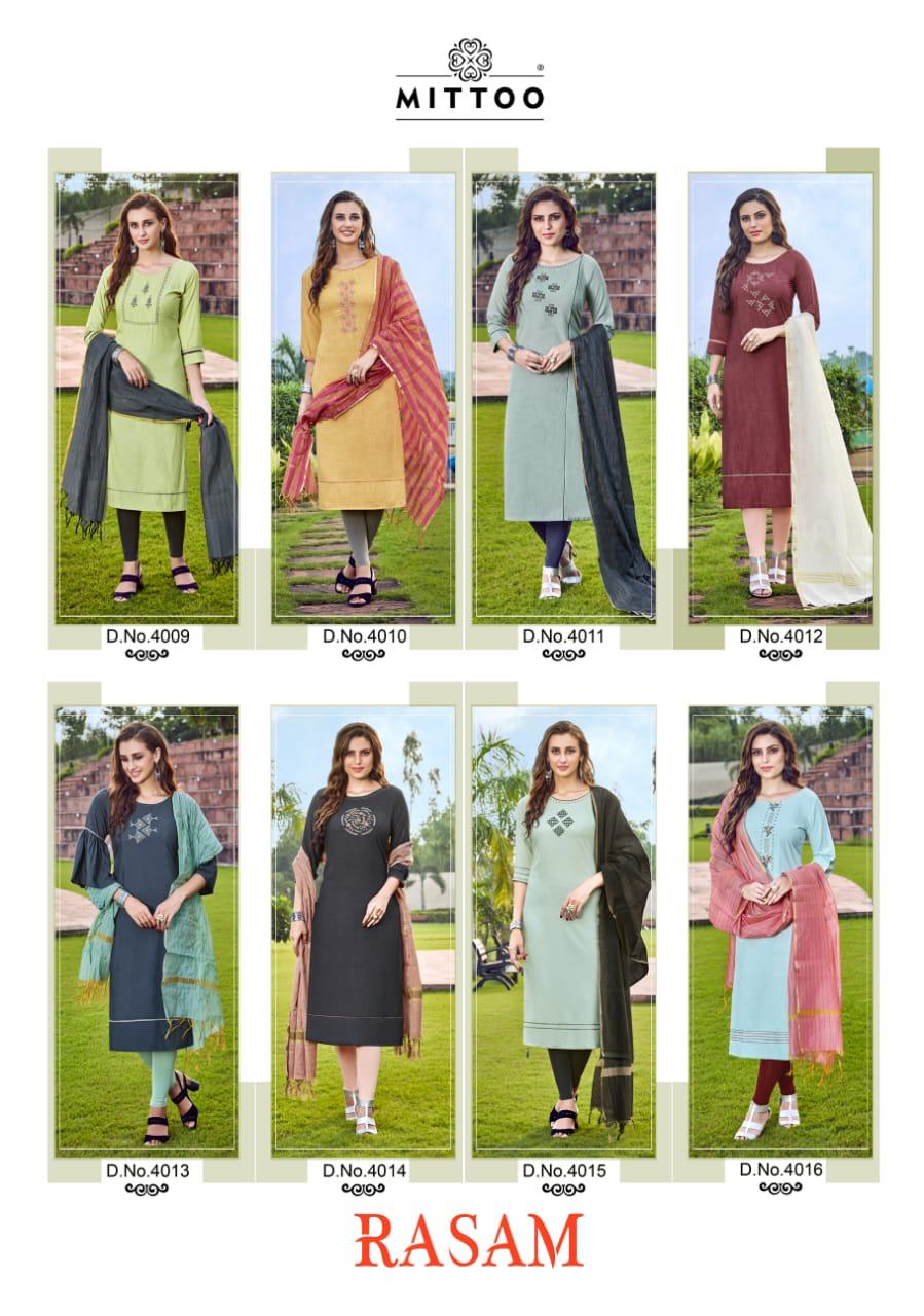 Buy Online Rasam By Mittoo Reyon Kurtis With Duppta Wholesale Supplier Gujarat 8 Pcs of Full Catalogue at Wholesale Price. Looking for Rasam By Mittoo Reyon Kurtis With Duppta Wholesale Supplier Gujarat Full Catalouge at Best Price? Buy Now Rasam By Mittoo Reyon Kurtis With Duppta Wholesale Supplier Gujarat at Wholesale Rate of Rs 5200 with Total 8 Pcs from authroized dealer and supplier of MITTOO Brand. Cost of Each piece is just only Rs 650 which is very low and affordable price to resale the product in your retail store ,This is Surat based Wholesale Supplier & Dealer of MITTOO Brand. Click on Brand name to Know more about MITTOO Brand's products.Call or Whatsapp on 9898838984 for booking or enquiry
