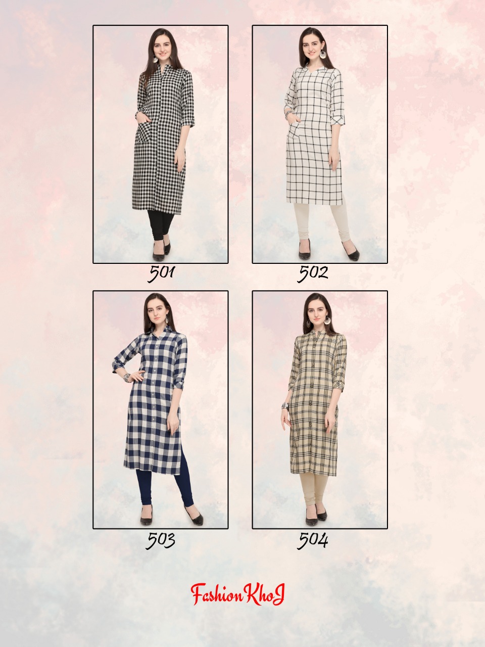 Rashika Vol 5 By Fashion Khoj 501 Series Fancy Reyon Printed Kurti Catlog Wholesaler Surat