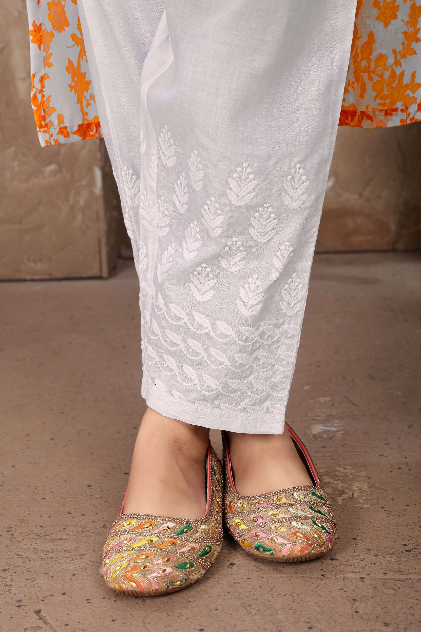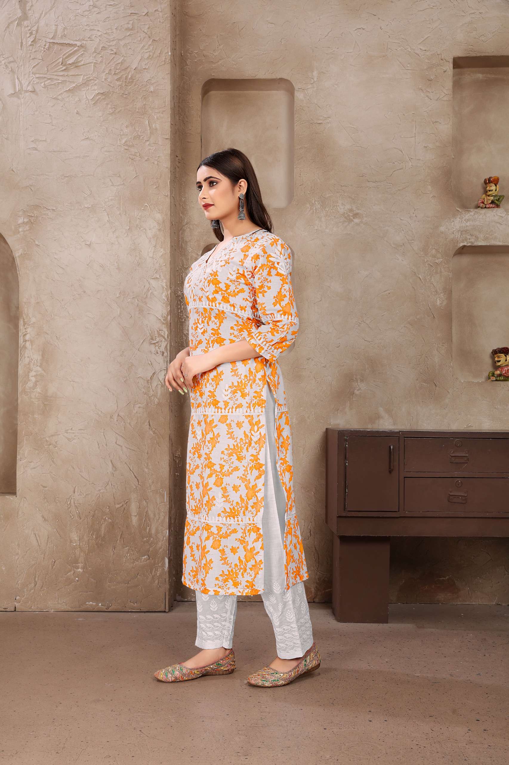 👕 Fabric for Kurti: Heavy Cotton with a unique Digital Print combined with intricate Chikankari Embroidery Work. The kurti's elegant design features modern digital prints complemented by the traditional embroidery, making it a perfect blend of contemporary and classic styles.