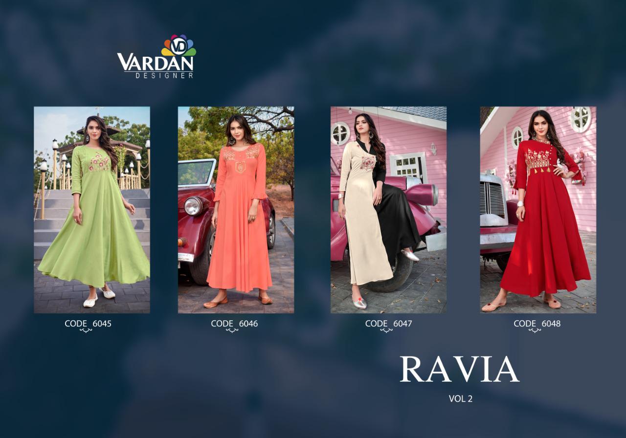 Buy Online Ravia Vol 2 By Vardan Designer Kuti Tipe Gown Single And Set Stockiest And Supplier From Surat 4 Pcs of Full Catalogue at Wholesale Price. Looking for Ravia Vol 2 By Vardan Designer Kuti Tipe Gown Single And Set Stockiest And Supplier From Surat Full Catalouge at Best Price? Buy Now Ravia Vol 2 By Vardan Designer Kuti Tipe Gown Single And Set Stockiest And Supplier From Surat at Wholesale Rate of Rs 3000 with Total 4 Pcs from authroized dealer and supplier of VARDAN DESIGNER Brand. Cost of Each piece is just only Rs 750 which is very low and affordable price to resale the product in your retail store ,This is Surat based Wholesale Supplier & Dealer of VARDAN DESIGNER Brand. Click on Brand name to Know more about VARDAN DESIGNER Brand's products.Call or Whatsapp on 9898838984 for booking or enquiry
