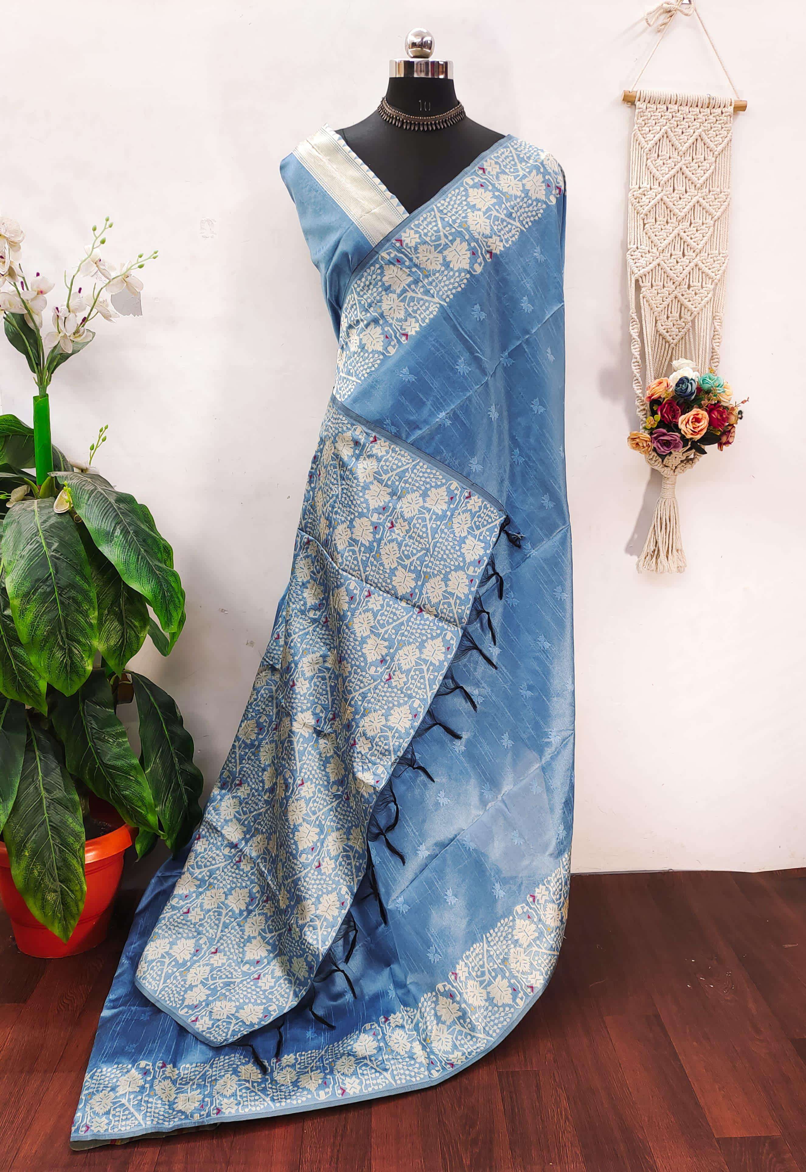 Elevate your ethnic style with this Banglori Handloom Raw Silk Saree, designed to reflect pure tradition and elegance. Featuring a contrast Jamdani-type weaving pallu and border, this saree is beautifully enhanced with all-over self weaving buttis that add subtle richness. Comes with a running blouse piece, making it a perfect choice for festive and special occasions. ✨ Fabric: Banglori Handloom Raw Silk 🎥 Real video attached for reference |