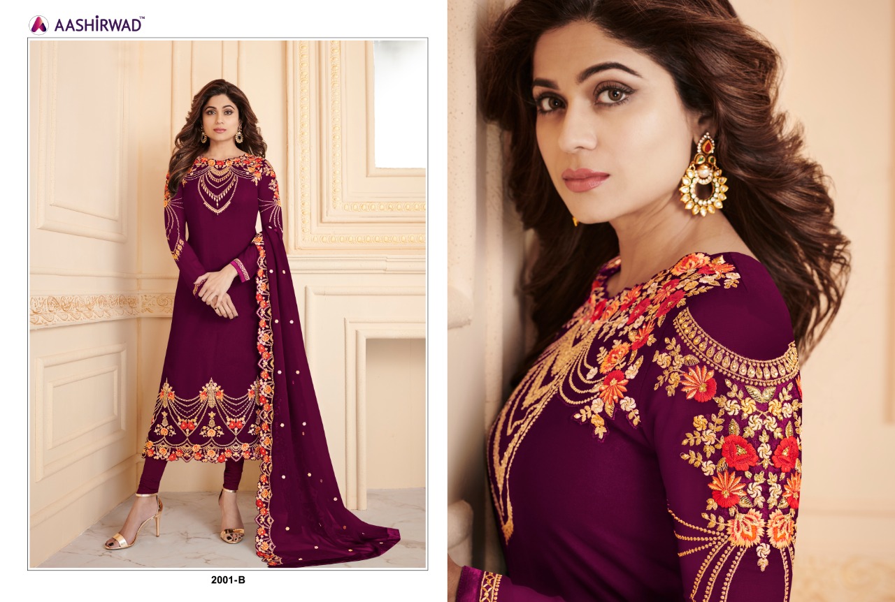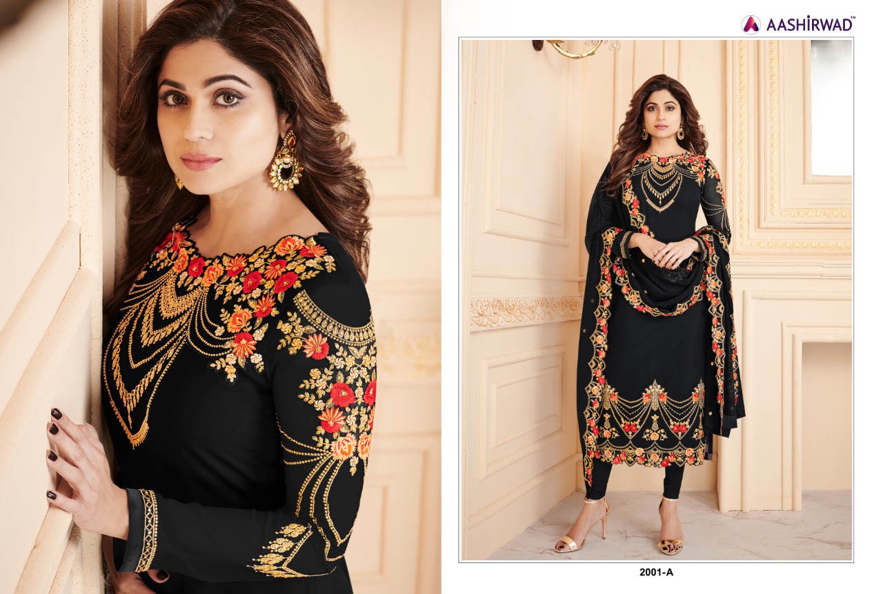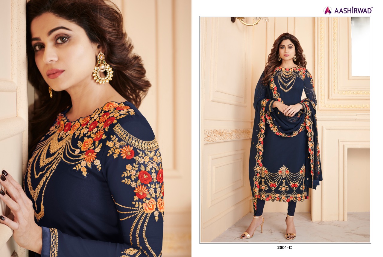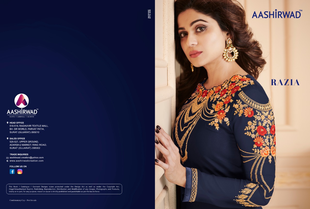 Buy Online Razia By Aashirwad 2001 Series Designer Party Wear Salwar Kameez Catlog Wholeaaler Surat 4 Pcs of Full Catalogue at Wholesale Price. Looking for Razia By Aashirwad 2001 Series Designer Party Wear Salwar Kameez Catlog Wholeaaler Surat Full Catalouge at Best Price? Buy Now Razia By Aashirwad 2001 Series Designer Party Wear Salwar Kameez Catlog Wholeaaler Surat at Wholesale Rate of Rs 6780 with Total 4 Pcs from authroized dealer and supplier of AASHIRWAD Brand. Cost of Each piece is just only Rs 1695 which is very low and affordable price to resale the product in your retail store ,This is Surat based Wholesale Supplier & Dealer of AASHIRWAD Brand. Click on Brand name to Know more about AASHIRWAD Brand's products.Call or Whatsapp on 9898838984 for booking or enquiry