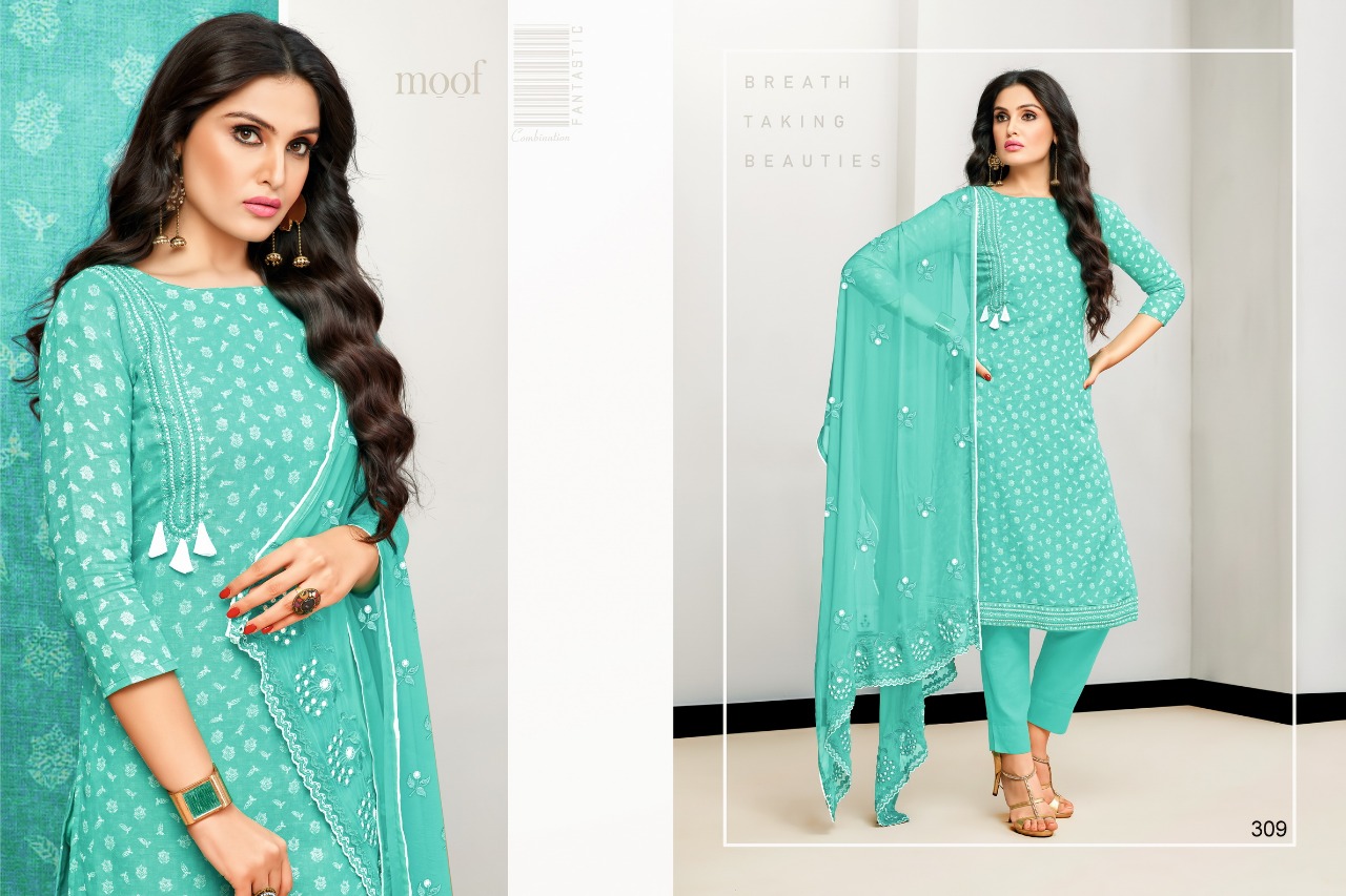 Raziya By Moof Fashion Series 306 To 312 Cotton Satin Printed Worked Suits Wholesale Supplier And Dealer Gujarat