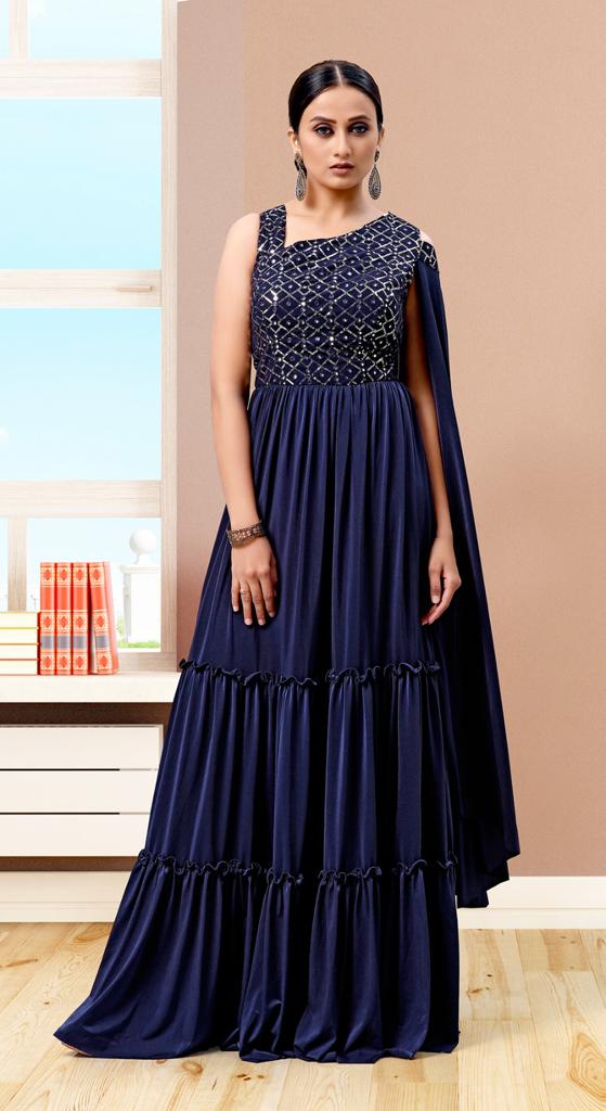 Readymade Gown Design 30499 Fully Stitched Gown With Sequnce And Foil Manufacturing Surat