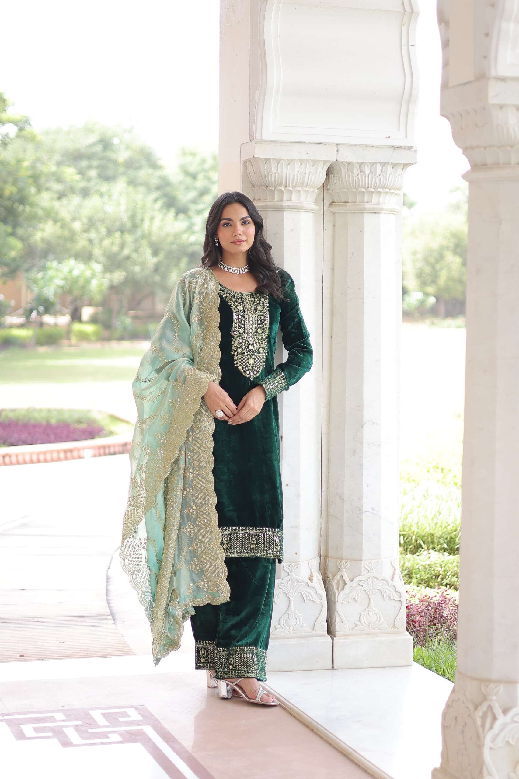 *💕💃🏻 Get ready to shine with these stunning outfit Made from Velvet And Sequins & Zari Embroidered Work. Discover the perfect ensemble to add a touch of glamour to your wardrobe and stand out from the crowd 💕💃🏻*.