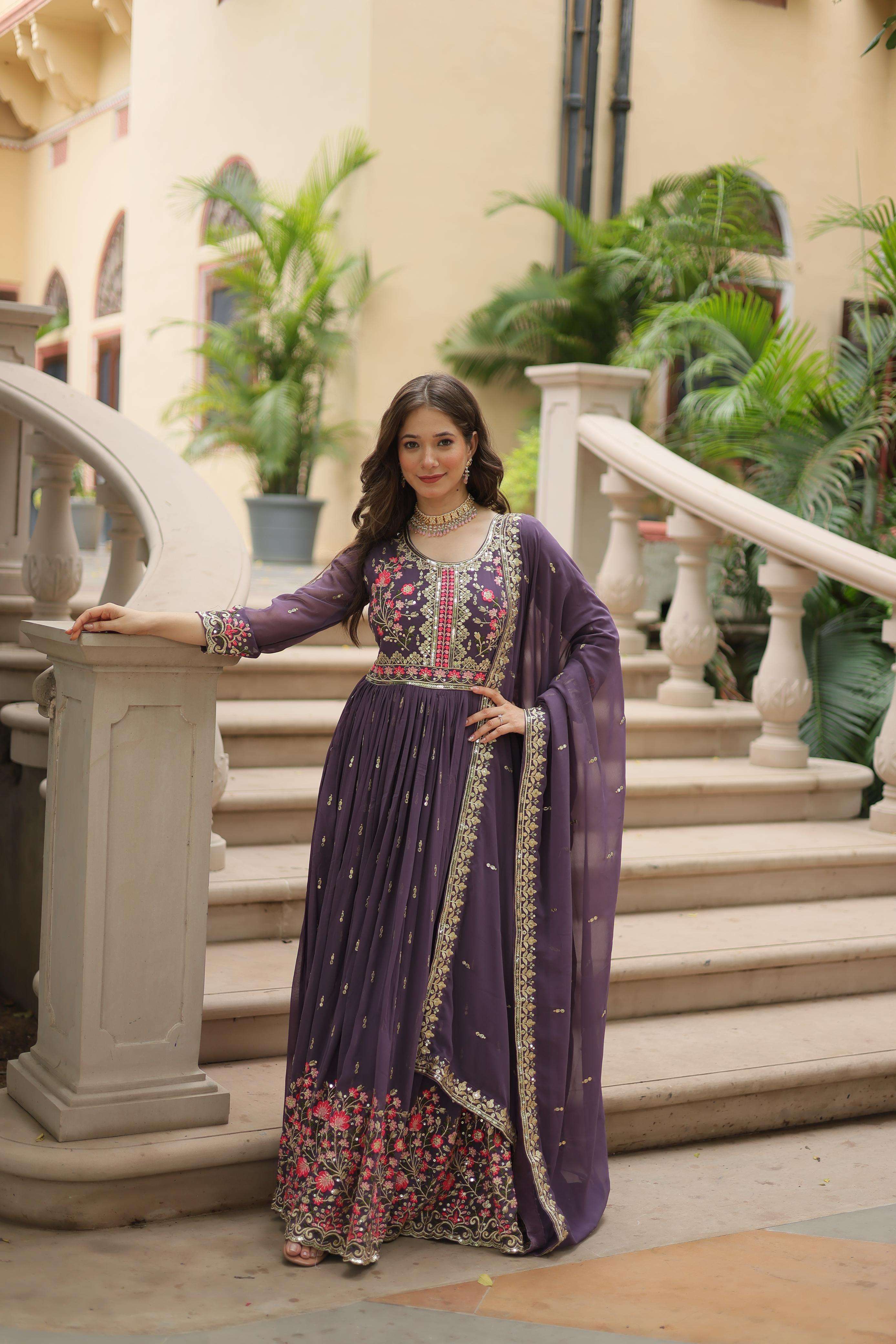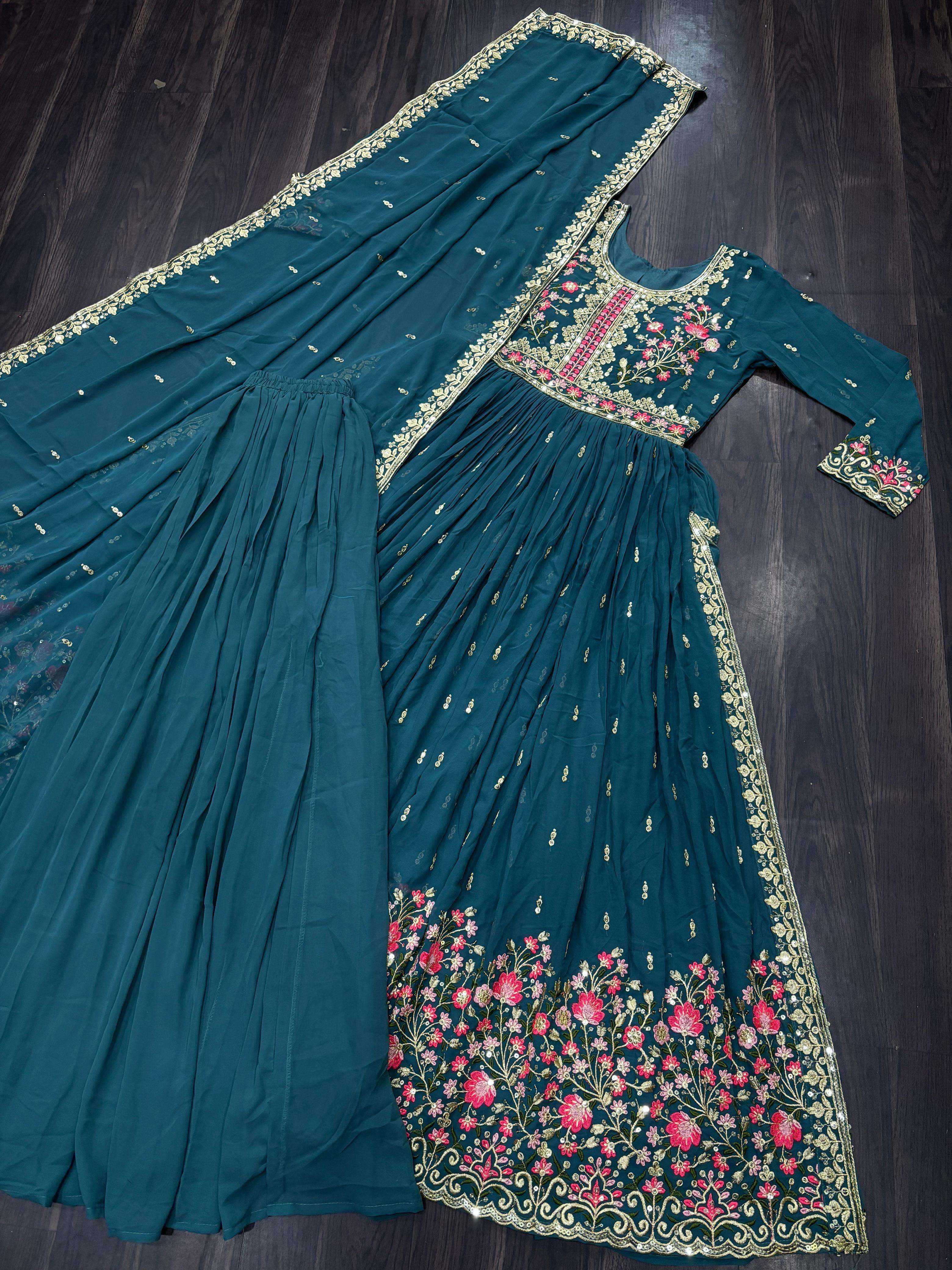 *💕💃🏻 Get ready to shine with these stunning outfit Made from Faux Georgette And Sequins Embroidered Work. Discover the perfect ensemble to add a touch of glamour to your wardrobe and stand out from the crowd 💕💃🏻*.
