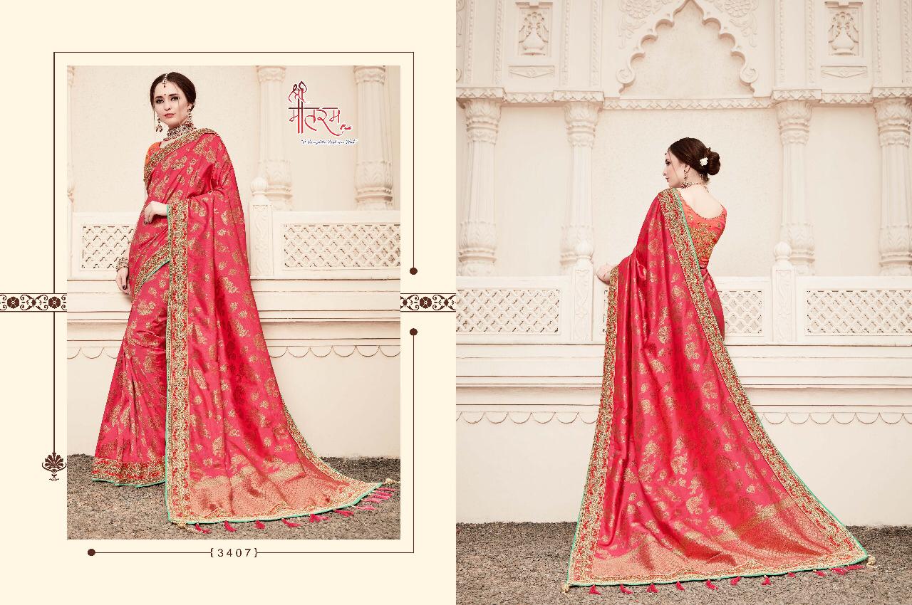 Buy Online Reevaz By Shree Mathram Series 3401 To 3409 Designer Party Wear Sarees Wholesale Supplier Gujarat 0 Pcs of Full Catalogue at Wholesale Price. Looking for Reevaz By Shree Mathram Series 3401 To 3409 Designer Party Wear Sarees Wholesale Supplier Gujarat Full Catalouge at Best Price? Buy Now Reevaz By Shree Mathram Series 3401 To 3409 Designer Party Wear Sarees Wholesale Supplier Gujarat at Wholesale Rate of Rs 0 with Total 0 Pcs from authroized dealer and supplier of Shree Mathram Brand. Cost of Each piece is just only Rs 0 which is very low and affordable price to resale the product in your retail store ,This is Surat based Wholesale Supplier & Dealer of Shree Mathram Brand. Click on Brand name to Know more about Shree Mathram Brand's products.Call or Whatsapp on 9898838984 for booking or enquiry