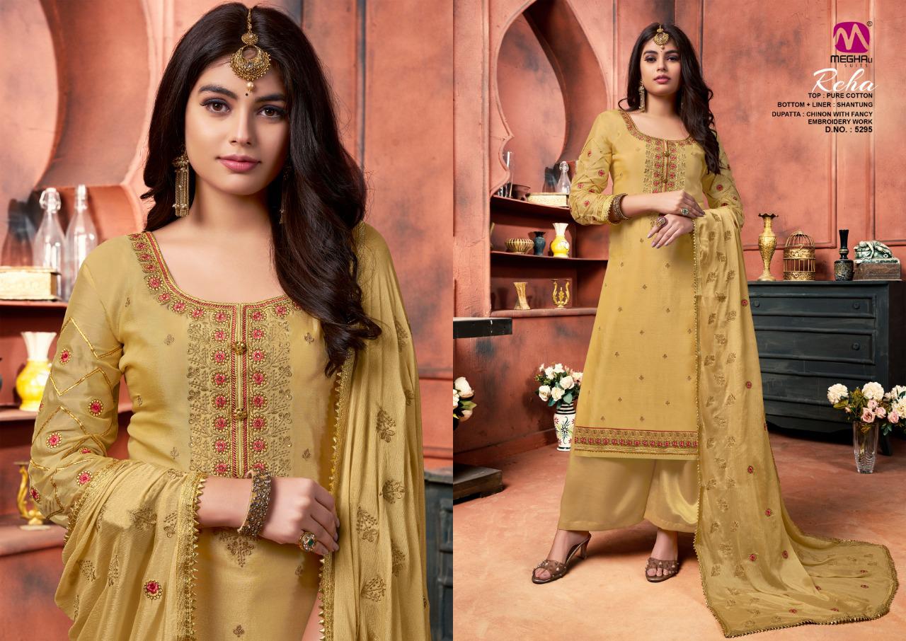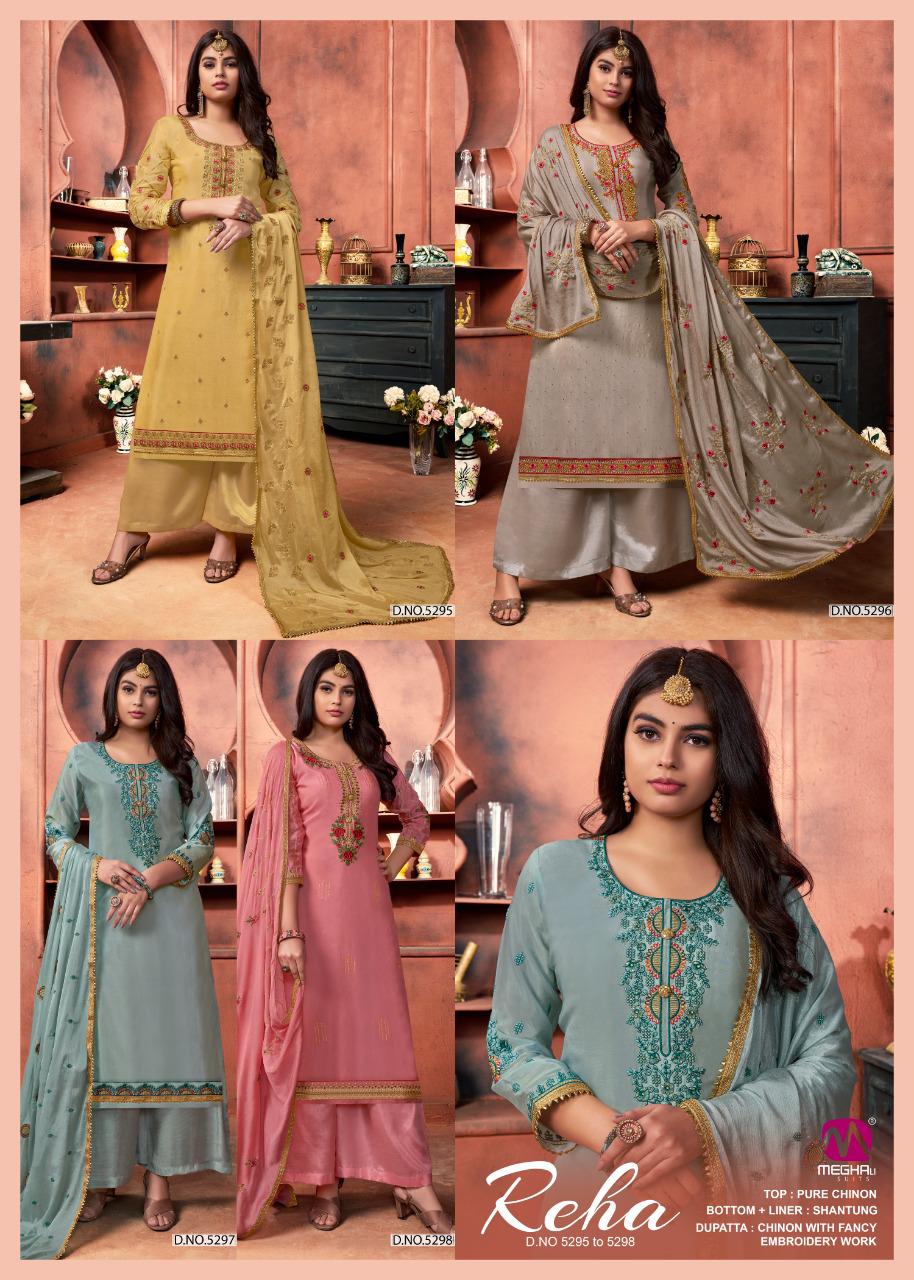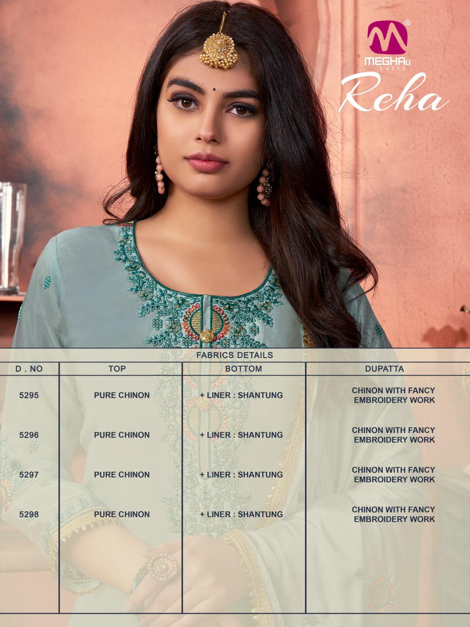 Buy Online Reha By Megha Chinon Designer Dress Materials Wholesale Supplier Surat 4 Pcs of Full Catalogue at Wholesale Price. Looking for Reha By Megha Chinon Designer Dress Materials Wholesale Supplier Surat Full Catalouge at Best Price? Buy Now Reha By Megha Chinon Designer Dress Materials Wholesale Supplier Surat at Wholesale Rate of Rs 5000 with Total 4 Pcs from authroized dealer and supplier of Brand. Cost of Each piece is just only Rs 1250 which is very low and affordable price to resale the product in your retail store ,This is Surat based Wholesale Supplier & Dealer of Brand. Click on Brand name to Know more about Brand's products.Call or Whatsapp on 9898838984 for booking or enquiry