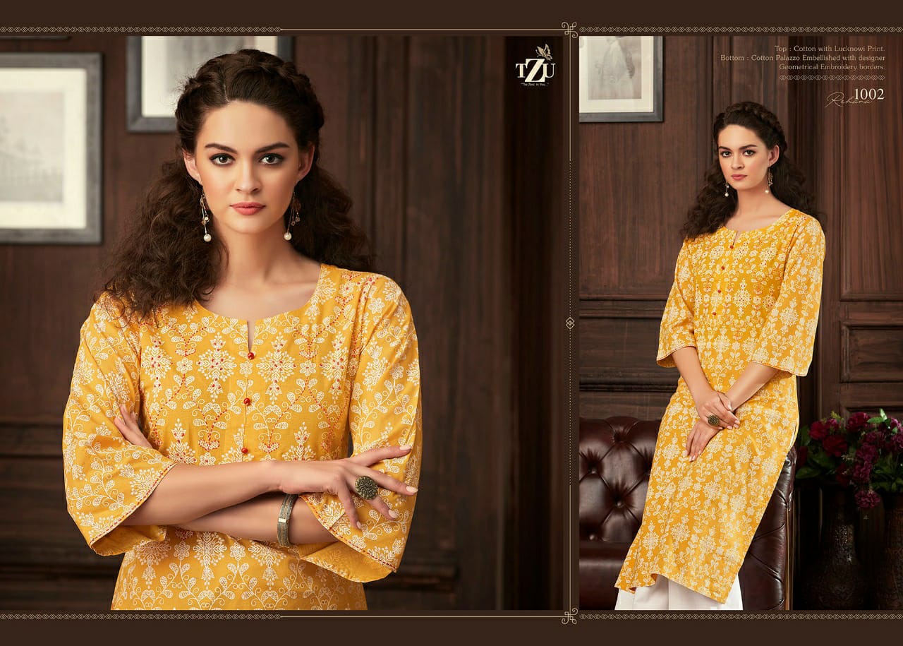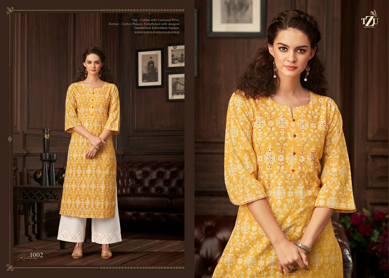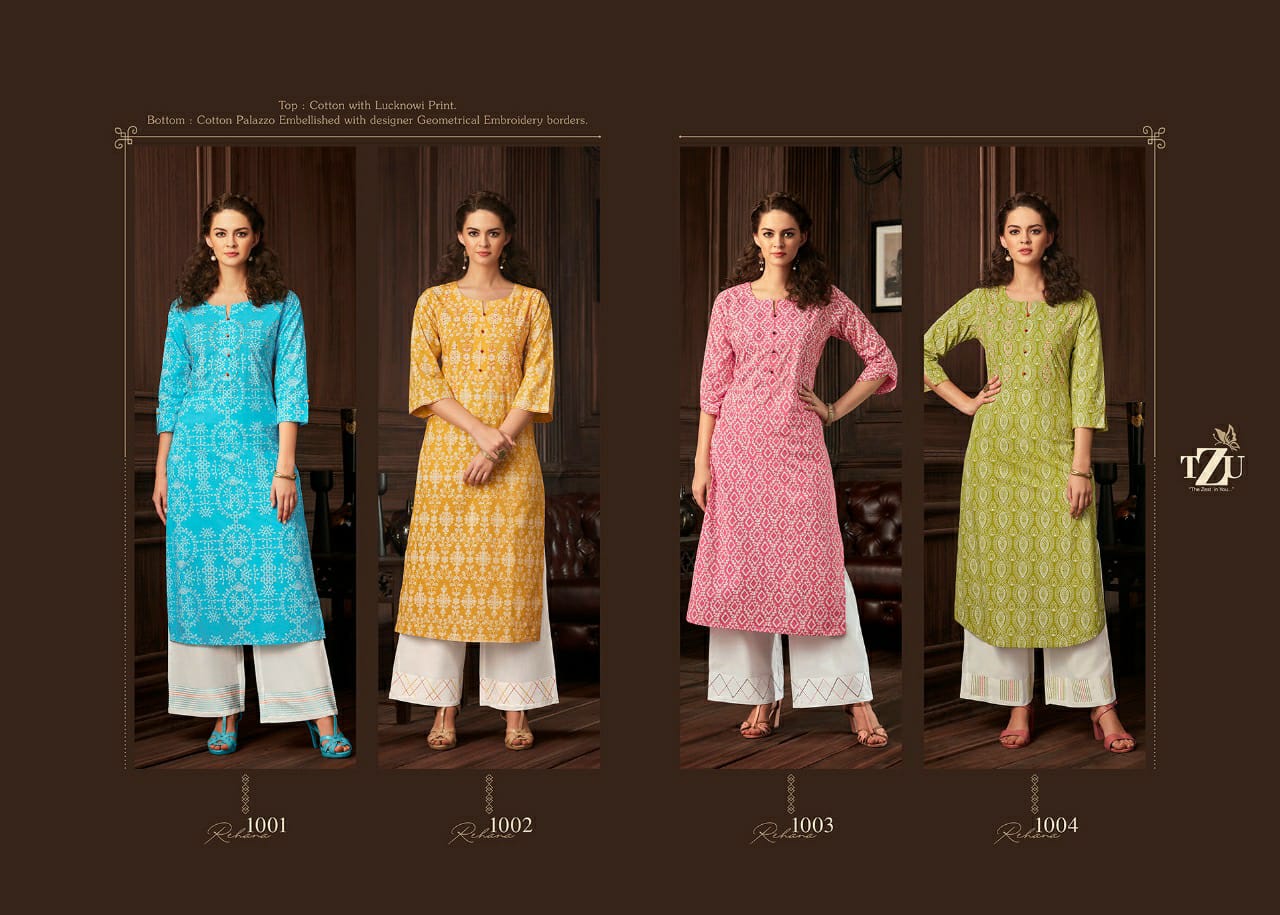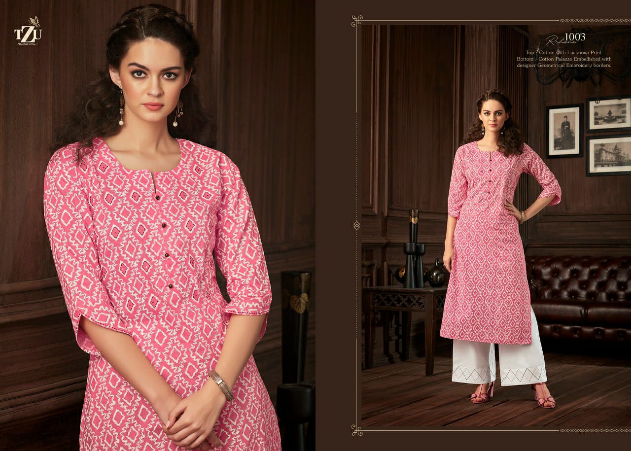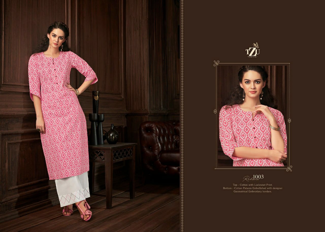 Buy Online Rehana Kurti With Plazzo By Tzu Manufacturer And Dealer From All Over India 4 Pcs of Full Catalogue at Wholesale Price. Looking for Rehana Kurti With Plazzo By Tzu Manufacturer And Dealer From All Over India Full Catalouge at Best Price? Buy Now Rehana Kurti With Plazzo By Tzu Manufacturer And Dealer From All Over India at Wholesale Rate of Rs 3168 with Total 4 Pcs from authroized dealer and supplier of Brand. Cost of Each piece is just only Rs 792 which is very low and affordable price to resale the product in your retail store ,This is Surat based Wholesale Supplier & Dealer of Brand. Click on Brand name to Know more about Brand's products.Call or Whatsapp on 9898838984 for booking or enquiry