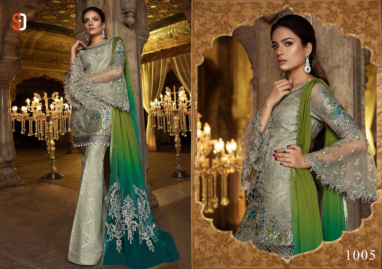 Buy Online Rehana Maria B By Shradda Designer Georgette Net With Embroidery Pakistani Salwaar Party Wear Designer Suits Wholesale Supplier And Dealer Gujarat 6 Pcs of Full Catalogue at Wholesale Price. Looking for Rehana Maria B By Shradda Designer Georgette Net With Embroidery Pakistani Salwaar Party Wear Designer Suits Wholesale Supplier And Dealer Gujarat Full Catalouge at Best Price? Buy Now Rehana Maria B By Shradda Designer Georgette Net With Embroidery Pakistani Salwaar Party Wear Designer Suits Wholesale Supplier And Dealer Gujarat at Wholesale Rate of Rs 7500 with Total 6 Pcs from authroized dealer and supplier of Shraddha designer Brand. Cost of Each piece is just only Rs 1250 which is very low and affordable price to resale the product in your retail store ,This is Surat based Wholesale Supplier & Dealer of Shraddha designer Brand. Click on Brand name to Know more about Shraddha designer Brand's products.Call or Whatsapp on 9898838984 for booking or enquiry