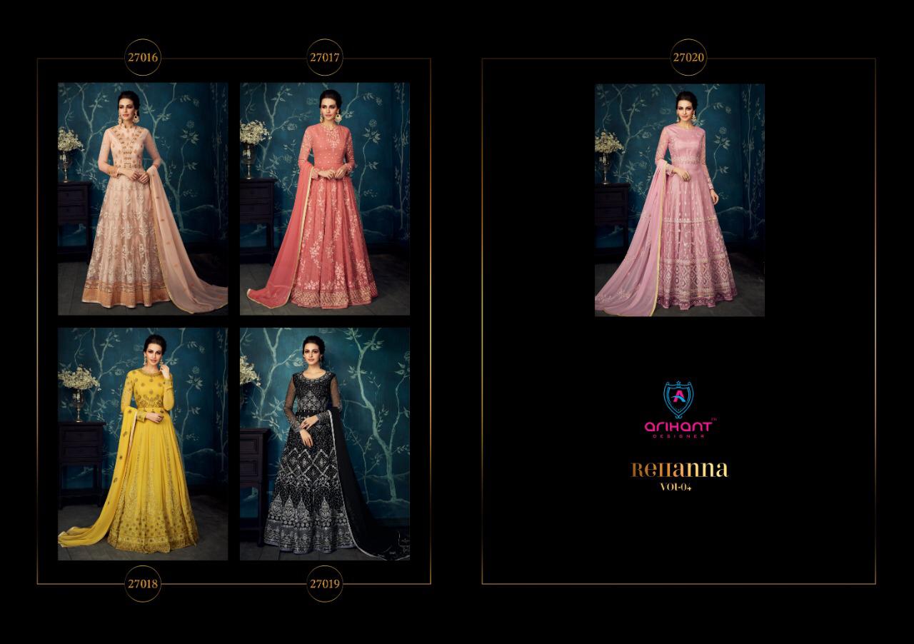 Buy Online Rehanna Vol 4 By Arihant Designer Series 27016 To 27020 Georgette With Net Party Wear Suits Wholesale Supplier Gujarat 5 Pcs of Full Catalogue at Wholesale Price. Looking for Rehanna Vol 4 By Arihant Designer Series 27016 To 27020 Georgette With Net Party Wear Suits Wholesale Supplier Gujarat Full Catalouge at Best Price? Buy Now Rehanna Vol 4 By Arihant Designer Series 27016 To 27020 Georgette With Net Party Wear Suits Wholesale Supplier Gujarat at Wholesale Rate of Rs 10475 with Total 5 Pcs from authroized dealer and supplier of ARIHANT Brand. Cost of Each piece is just only Rs 2095 which is very low and affordable price to resale the product in your retail store ,This is Surat based Wholesale Supplier & Dealer of ARIHANT Brand. Click on Brand name to Know more about ARIHANT Brand's products.Call or Whatsapp on 9898838984 for booking or enquiry