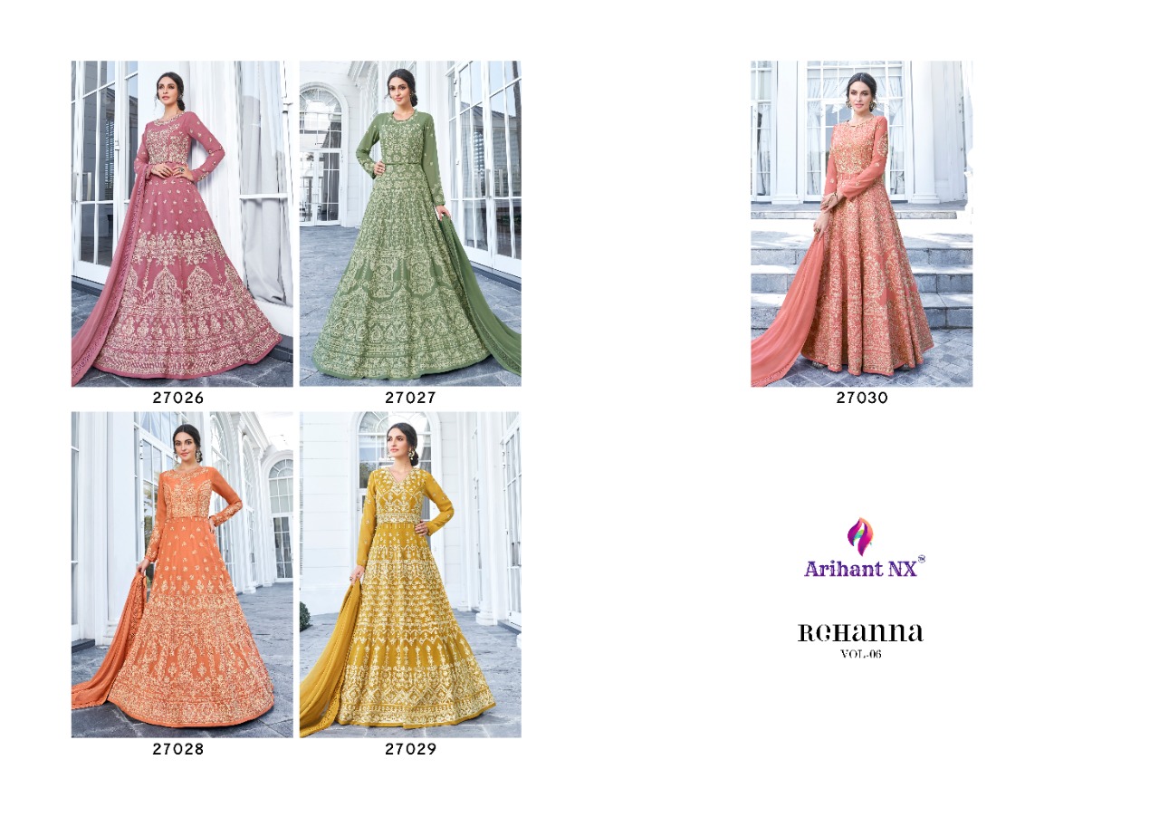 Rehanna Vol 6 By Arihant Nx Series 27026 To 27030 Georgette Embroidered Designer Party Gowns Wholesale Supplier And Dealer Surat
