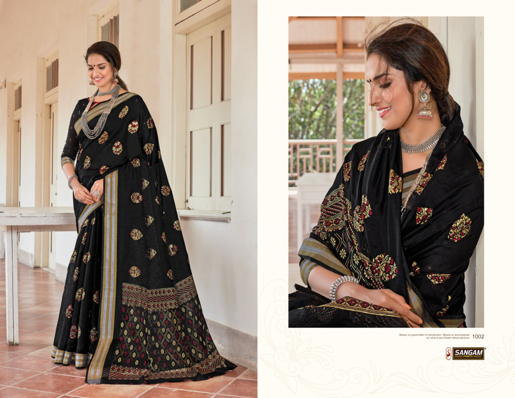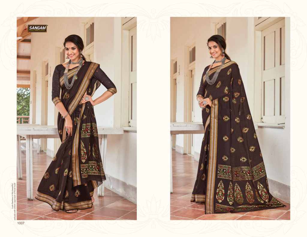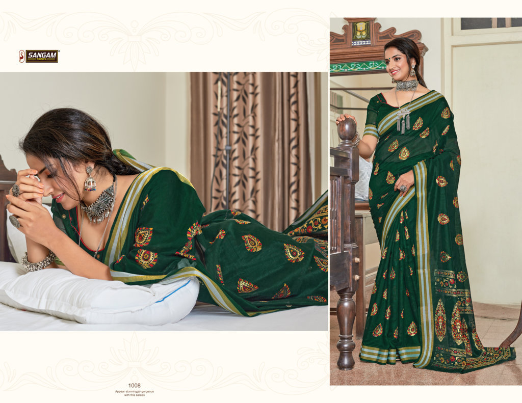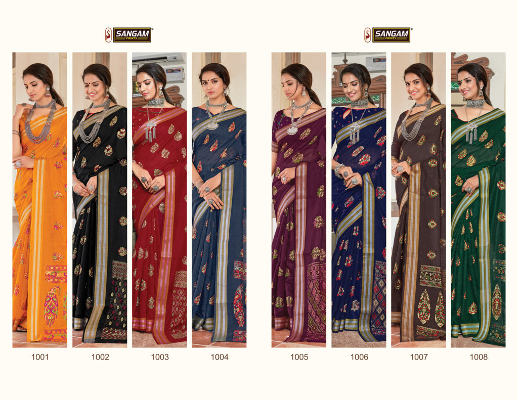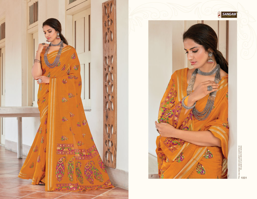 Brand - Sangam. Catalog Name : RESHAM DORI VOL-2 Saree Size : 5.50 Mtr Blouse Fabric : 0.80 Mtr Saree Fabric : Chanderi Blouse Fabric : Chanderi Price : 770 /-Gst Extra Set to set |