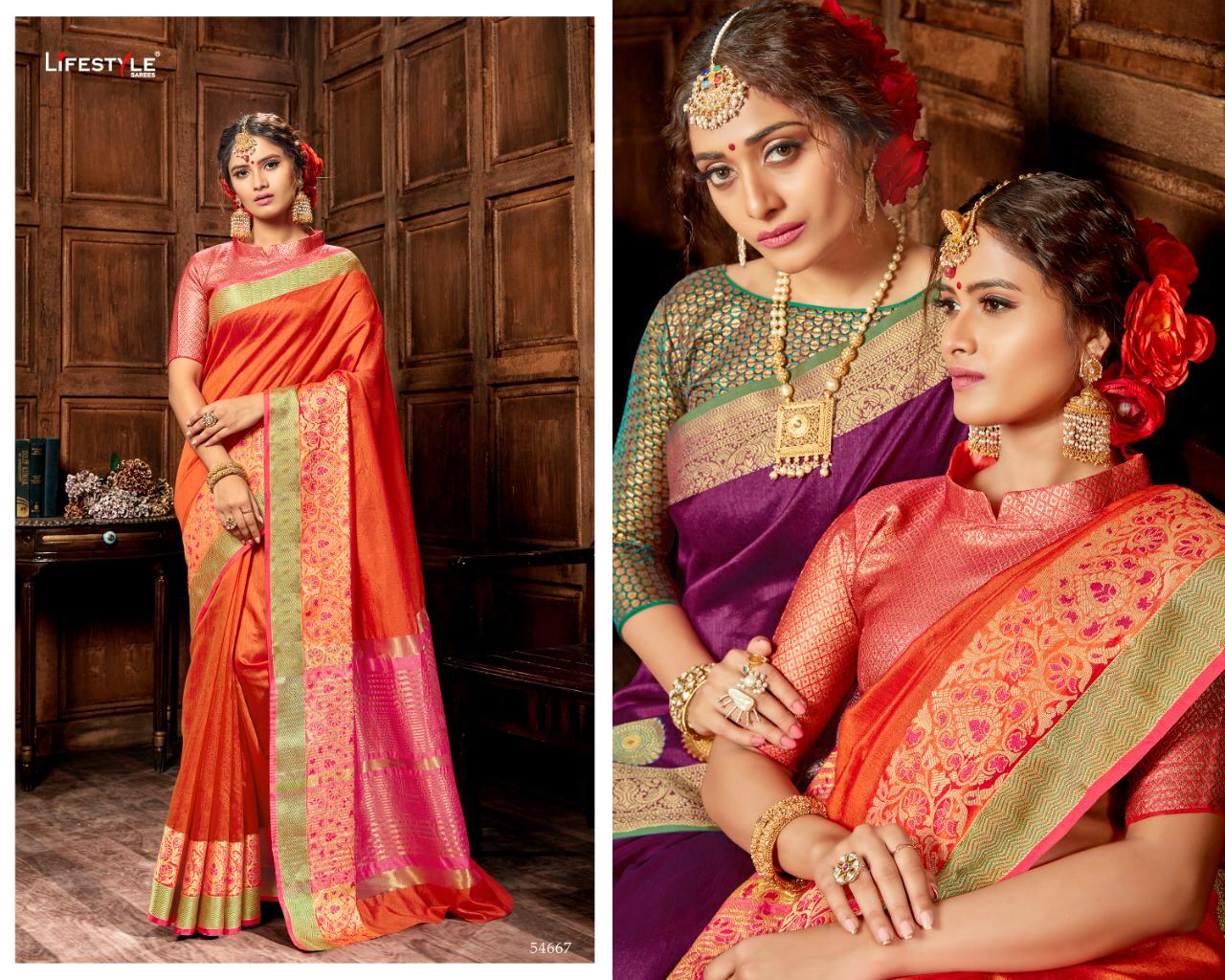 Resham Silk By Lifestyle 54661 Series Fancy Silk Saree Collection Wholesaler Surat