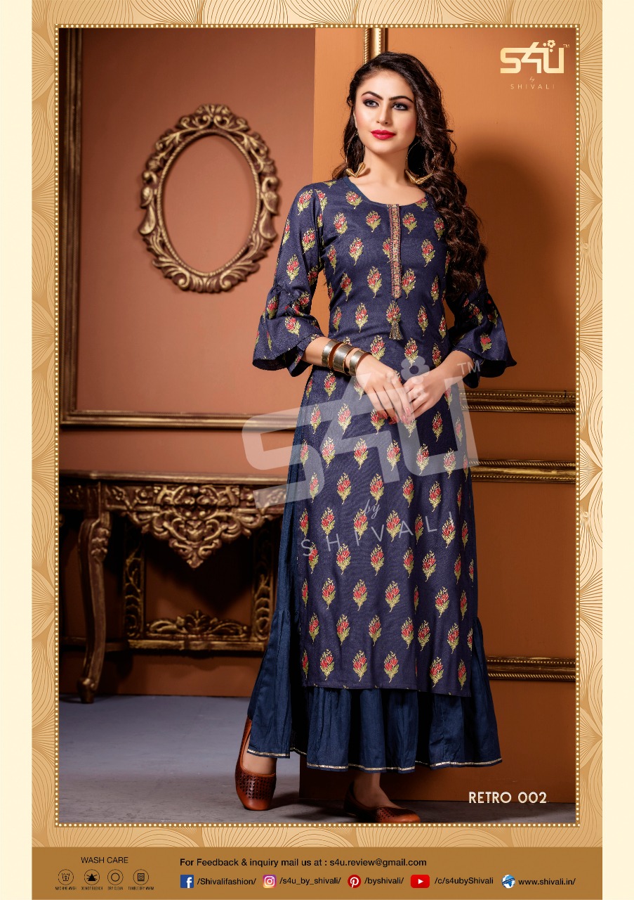 Buy Online Retro 2019 By S4u Shivali Beautiful Designer Summer Wear Kurtis Wholesale Supplier Surat 8 Pcs of Full Catalogue at Wholesale Price. Looking for Retro 2019 By S4u Shivali Beautiful Designer Summer Wear Kurtis Wholesale Supplier Surat Full Catalouge at Best Price? Buy Now Retro 2019 By S4u Shivali Beautiful Designer Summer Wear Kurtis Wholesale Supplier Surat at Wholesale Rate of Rs 8440 with Total 8 Pcs from authroized dealer and supplier of S4U Brand. Cost of Each piece is just only Rs 1055 which is very low and affordable price to resale the product in your retail store ,This is Surat based Wholesale Supplier & Dealer of S4U Brand. Click on Brand name to Know more about S4U Brand's products.Call or Whatsapp on 9898838984 for booking or enquiry