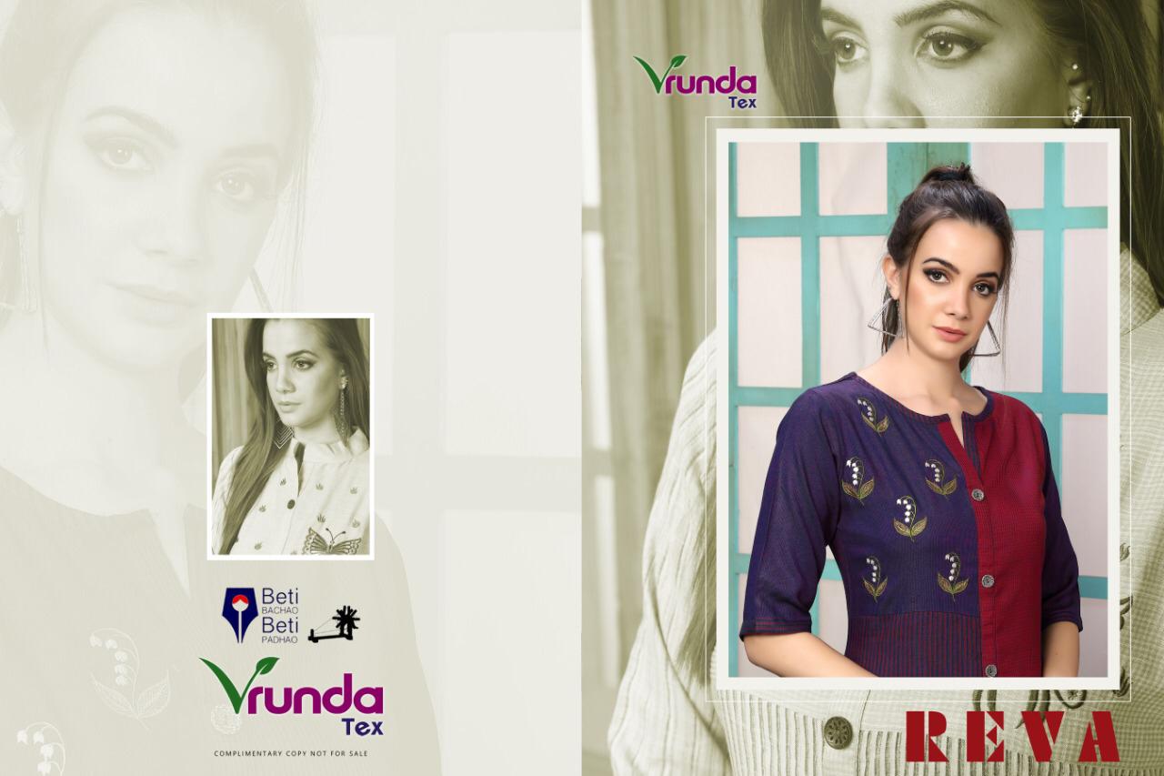 Buy Online Reva By Vrunda Tex Reyon Kurtis With Plazzo Wholesale Supplier Surat 5 Pcs of Full Catalogue at Wholesale Price. Looking for Reva By Vrunda Tex Reyon Kurtis With Plazzo Wholesale Supplier Surat Full Catalouge at Best Price? Buy Now Reva By Vrunda Tex Reyon Kurtis With Plazzo Wholesale Supplier Surat at Wholesale Rate of Rs 3495 with Total 5 Pcs from authroized dealer and supplier of Brand. Cost of Each piece is just only Rs 699 which is very low and affordable price to resale the product in your retail store ,This is Surat based Wholesale Supplier & Dealer of Brand. Click on Brand name to Know more about Brand's products.Call or Whatsapp on 9898838984 for booking or enquiry