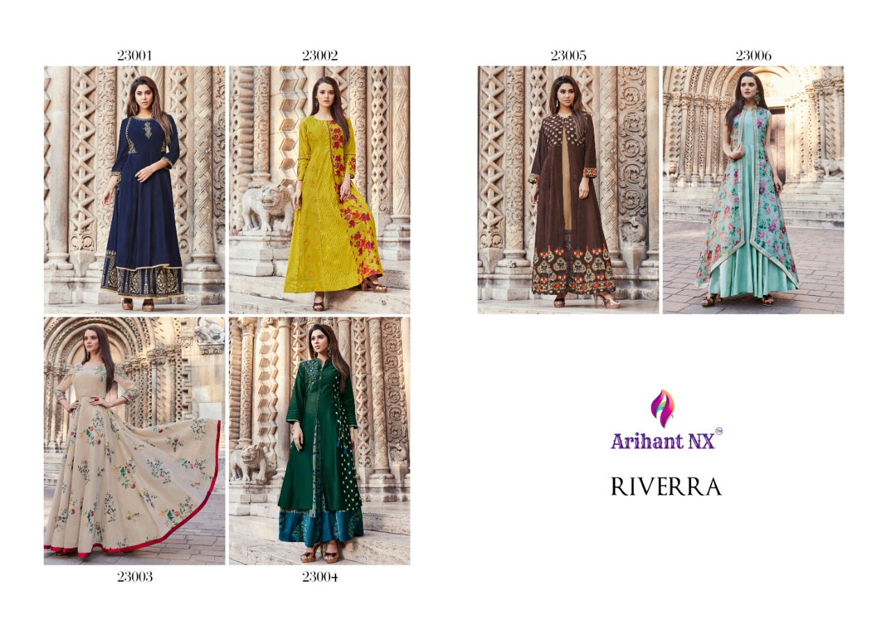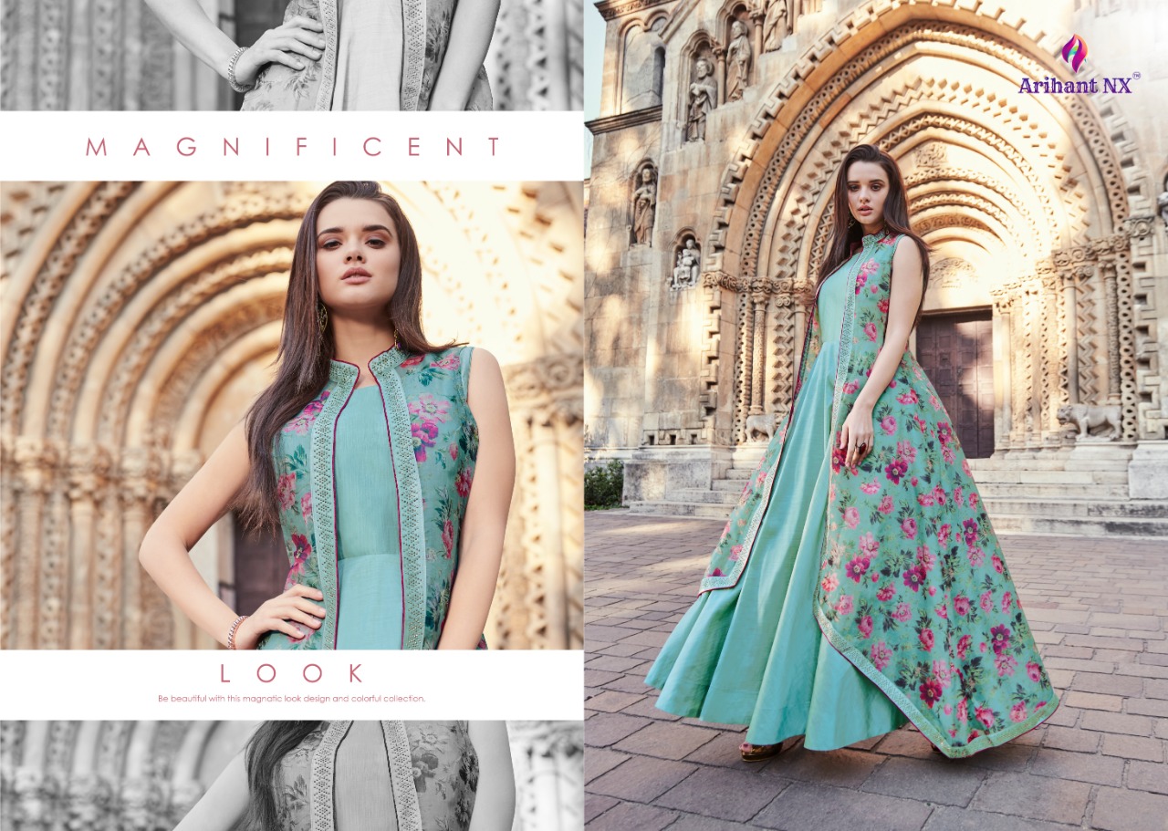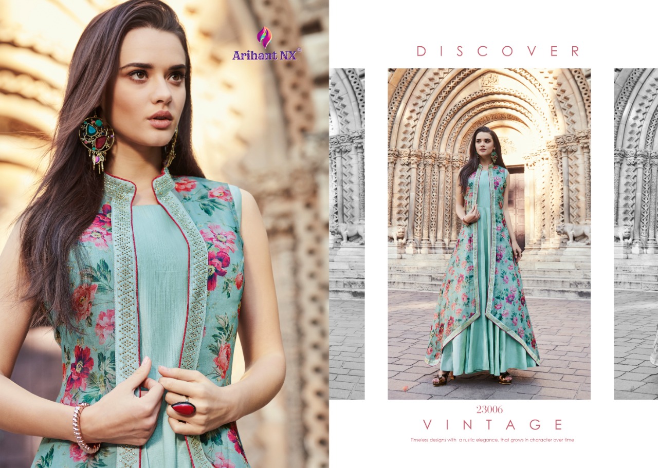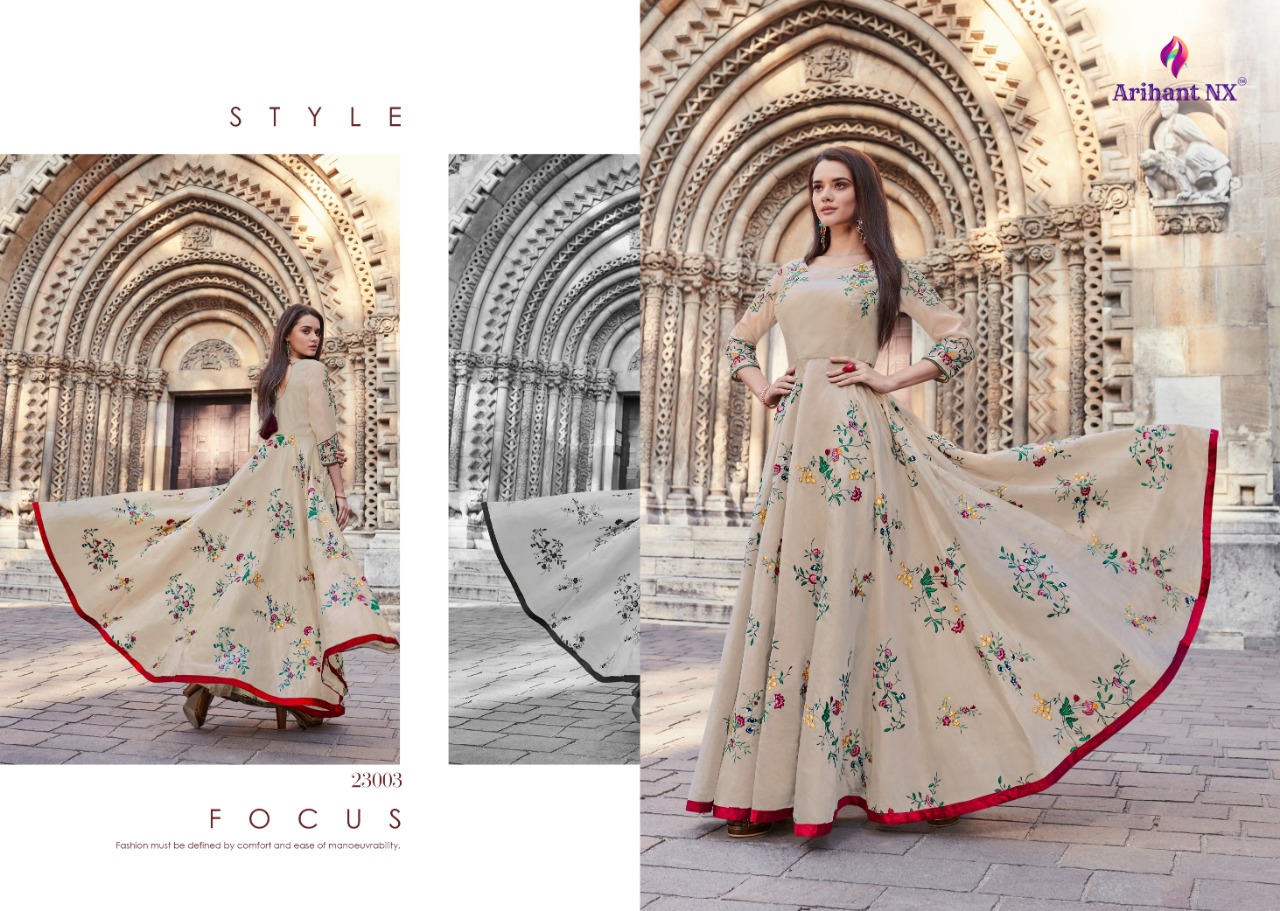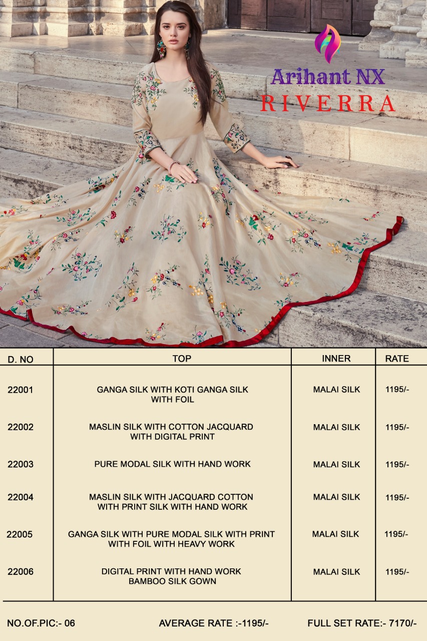 Buy Online Reverra By Arihant Nx 22001 Series Fancy Party Wear Gown Collection Wholesaler Surat 6 Pcs of Full Catalogue at Wholesale Price. Looking for Reverra By Arihant Nx 22001 Series Fancy Party Wear Gown Collection Wholesaler Surat Full Catalouge at Best Price? Buy Now Reverra By Arihant Nx 22001 Series Fancy Party Wear Gown Collection Wholesaler Surat at Wholesale Rate of Rs 7170 with Total 6 Pcs from authroized dealer and supplier of ARIHANT NX Brand. Cost of Each piece is just only Rs 1195 which is very low and affordable price to resale the product in your retail store ,This is Surat based Wholesale Supplier & Dealer of ARIHANT NX Brand. Click on Brand name to Know more about ARIHANT NX Brand's products.Call or Whatsapp on 9898838984 for booking or enquiry