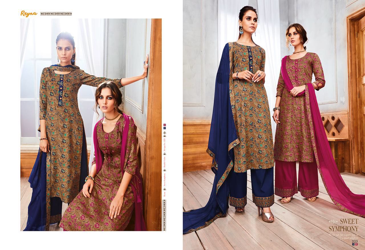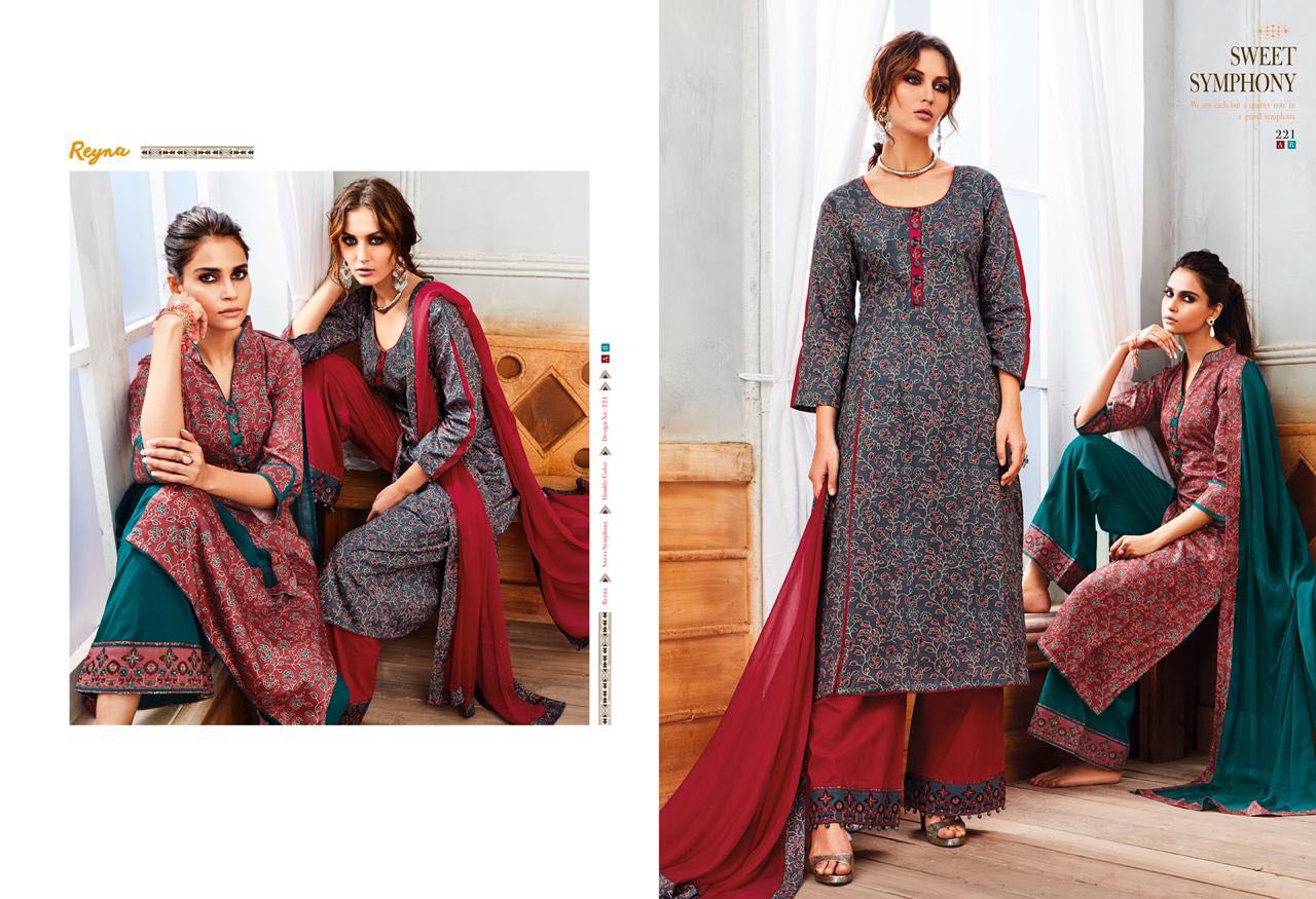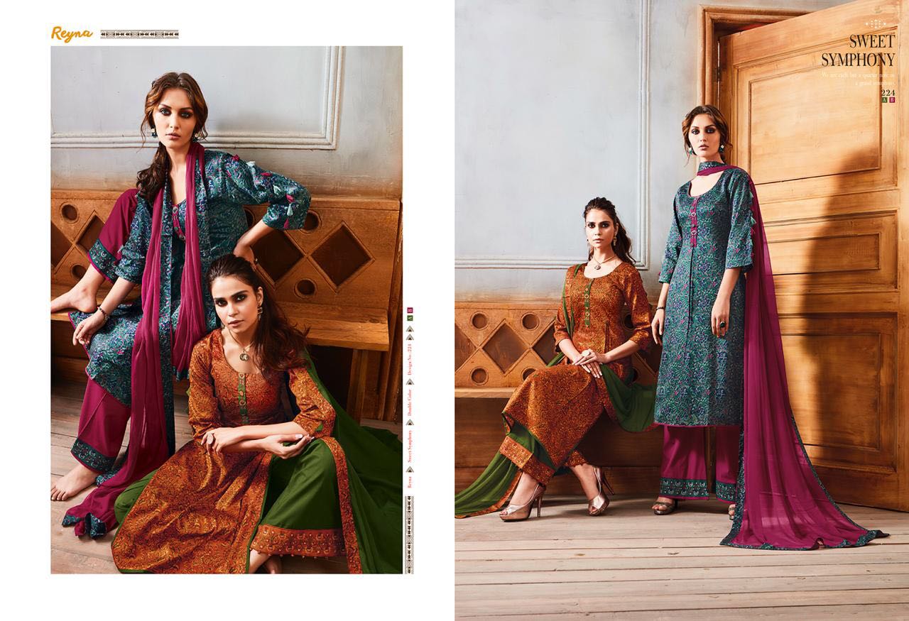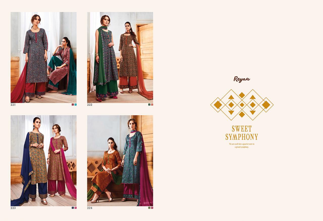 Buy Online Reyna Sweet Symphony 221ab To 224ab Series Cotton Satin Suit 8 Pcs of Full Catalogue at Wholesale Price. Looking for Reyna Sweet Symphony 221ab To 224ab Series Cotton Satin Suit Full Catalouge at Best Price? Buy Now Reyna Sweet Symphony 221ab To 224ab Series Cotton Satin Suit at Wholesale Rate of Rs 9080 with Total 8 Pcs from authroized dealer and supplier of sa Brand. Cost of Each piece is just only Rs 1135 which is very low and affordable price to resale the product in your retail store ,This is Surat based Wholesale Supplier & Dealer of sa Brand. Click on Brand name to Know more about sa Brand's products.Call or Whatsapp on 9898838984 for booking or enquiry