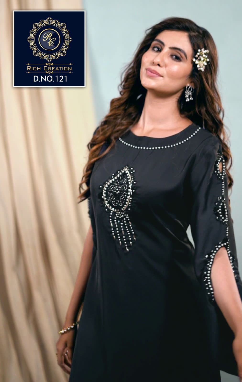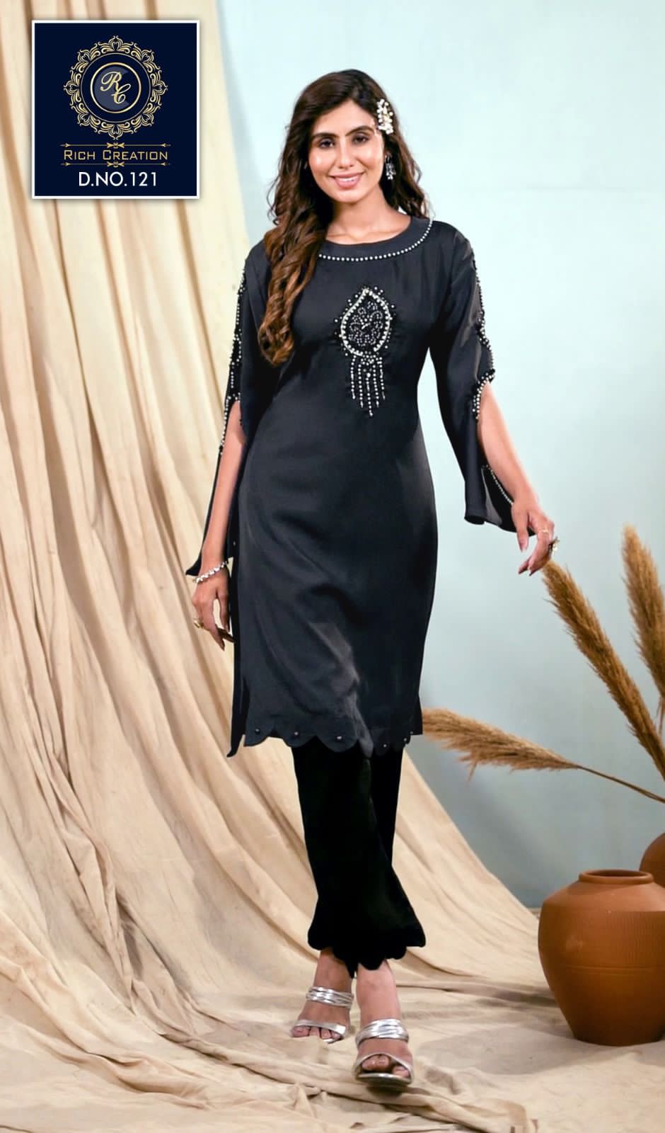 *?Today We Are Launching* *Rich Creation New Handwork design in a New Fabric?* * Classy Style Handwork In neck and Top & stylish fancy Sleeve n pant * ??????? _ *Launch BY* *?Rich Creation?* *?D. No:- 121?* ??????????? *??Description*?? ??????? *Designer luxury handwork design??With beautiful designer Handwork in neck and Top and stylish Sleeves & a new concept... paired with Stylish Pant With New pattern* ? *Top xl size chest* (42) ? *Bottom xl size* (36-42) *single rate* :-1200/-Only* Gst ship extra *??Single Single & Full Set Available* *Colour may slightly vary due to light effect* (101% premium quality ) ? *Dispatch Tomorrow* ? 100+Singles |