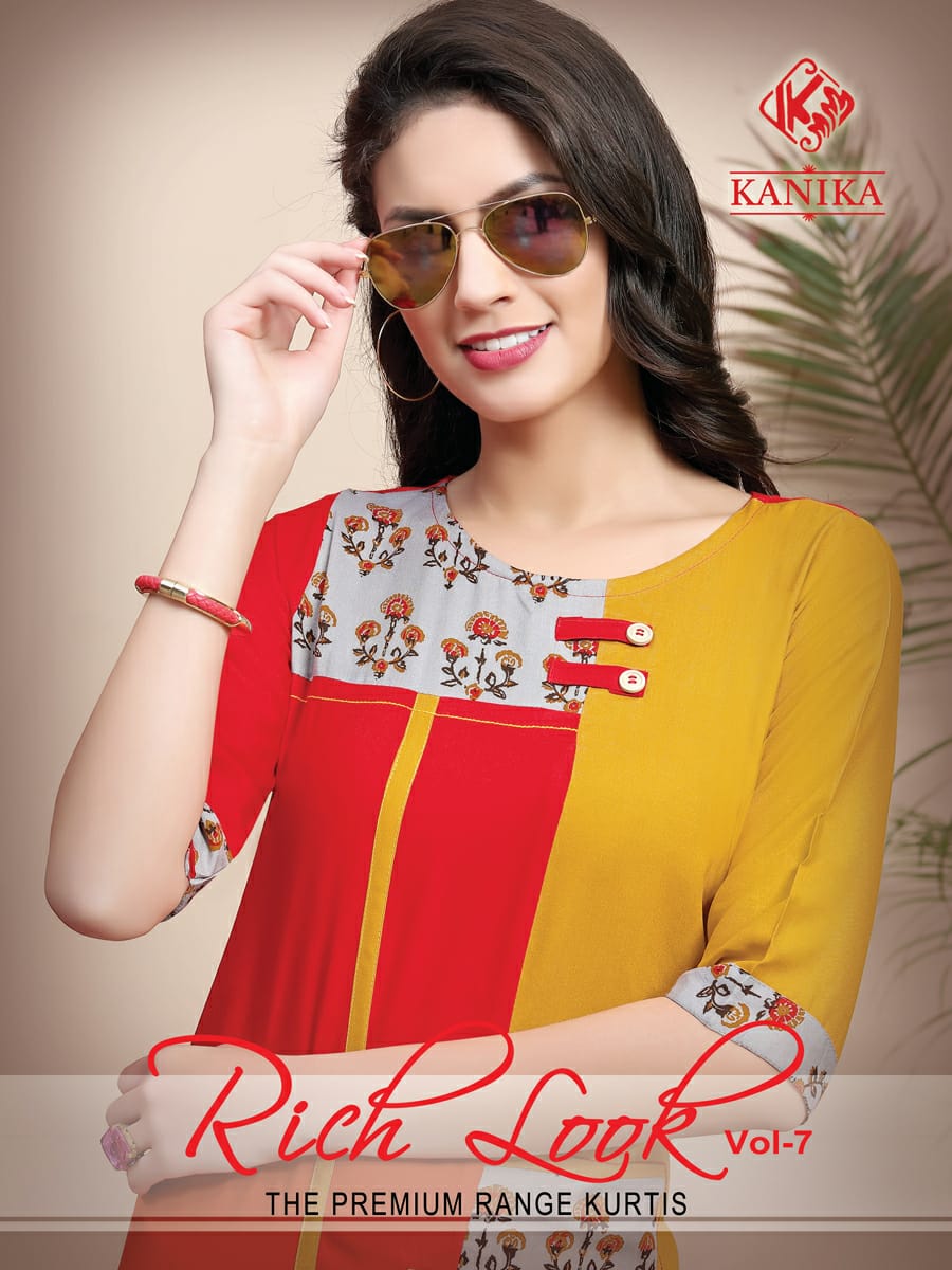 Buy Online Rich Look Vol 7 By Kanika Reyon Designer Kurtis Wholesale Supplier India 6 Pcs of Full Catalogue at Wholesale Price. Looking for Rich Look Vol 7 By Kanika Reyon Designer Kurtis Wholesale Supplier India Full Catalouge at Best Price? Buy Now Rich Look Vol 7 By Kanika Reyon Designer Kurtis Wholesale Supplier India at Wholesale Rate of Rs 2394 with Total 6 Pcs from authroized dealer and supplier of Brand. Cost of Each piece is just only Rs 399 which is very low and affordable price to resale the product in your retail store ,This is Surat based Wholesale Supplier & Dealer of Brand. Click on Brand name to Know more about Brand's products.Call or Whatsapp on 9898838984 for booking or enquiry