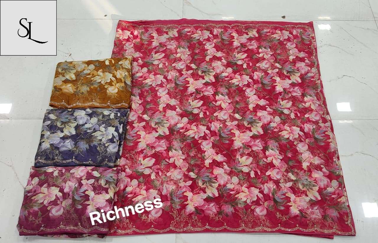 Buy Online Richness 2 by SL saree Collection manufacturer surat 6 Pcs of Full Catalogue at Wholesale Price. Looking for Richness 2 by SL saree Collection manufacturer surat Full Catalouge at Best Price? Buy Now Richness 2 by SL saree Collection manufacturer surat at Wholesale Rate of Rs 5340 with Total 6 Pcs from authroized dealer and supplier of BRAND'S Brand. Cost of Each piece is just only Rs 890 which is very low and affordable price to resale the product in your retail store ,This is Surat based Wholesale Supplier & Dealer of BRAND'S Brand. Click on Brand name to Know more about BRAND'S Brand's products.Call or Whatsapp on 9898838984 for booking or enquiry