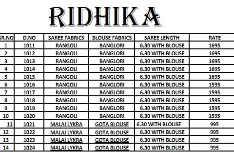 BrAnd - Lady etenic. Catlog name - RIDHIKA . Series -1011 to 1024. Set & Loose . GST 5 Percent Extra. Delivery from 23-07-18. Book your order order and inquiry +919898838984 |