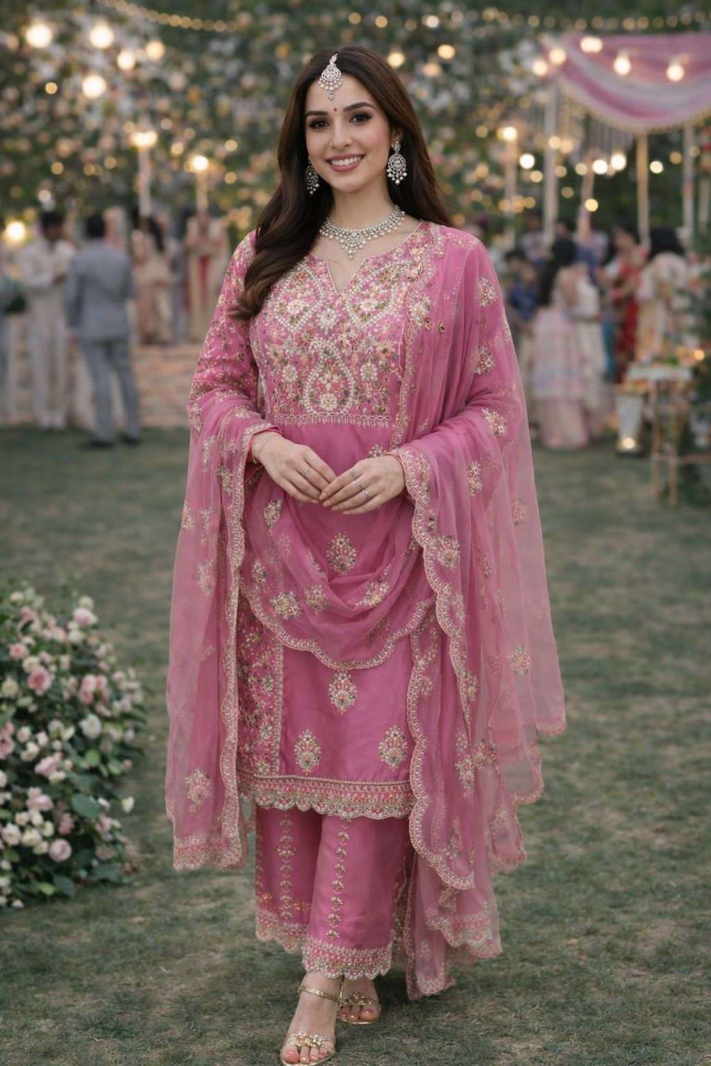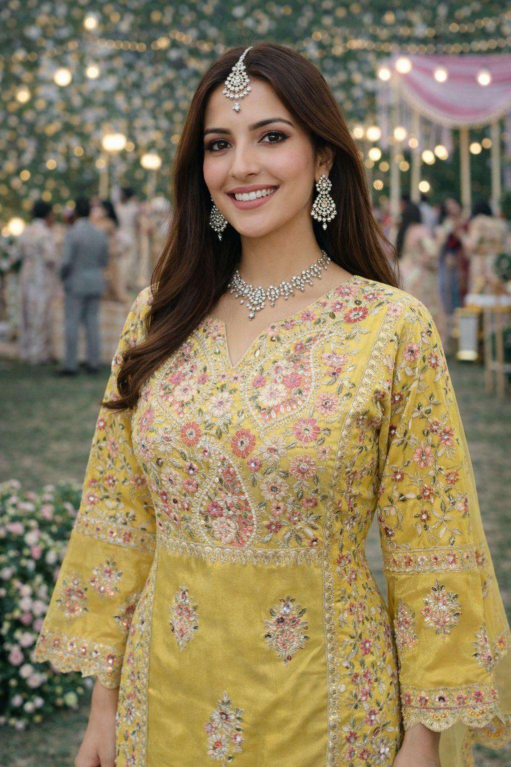 FABRIC - PREMIUM REAL SIMAR SILK ( TRENDY WEDDING LOOK HEAVY EMBROIDERED WITH PLAZZO & DUPATTA )