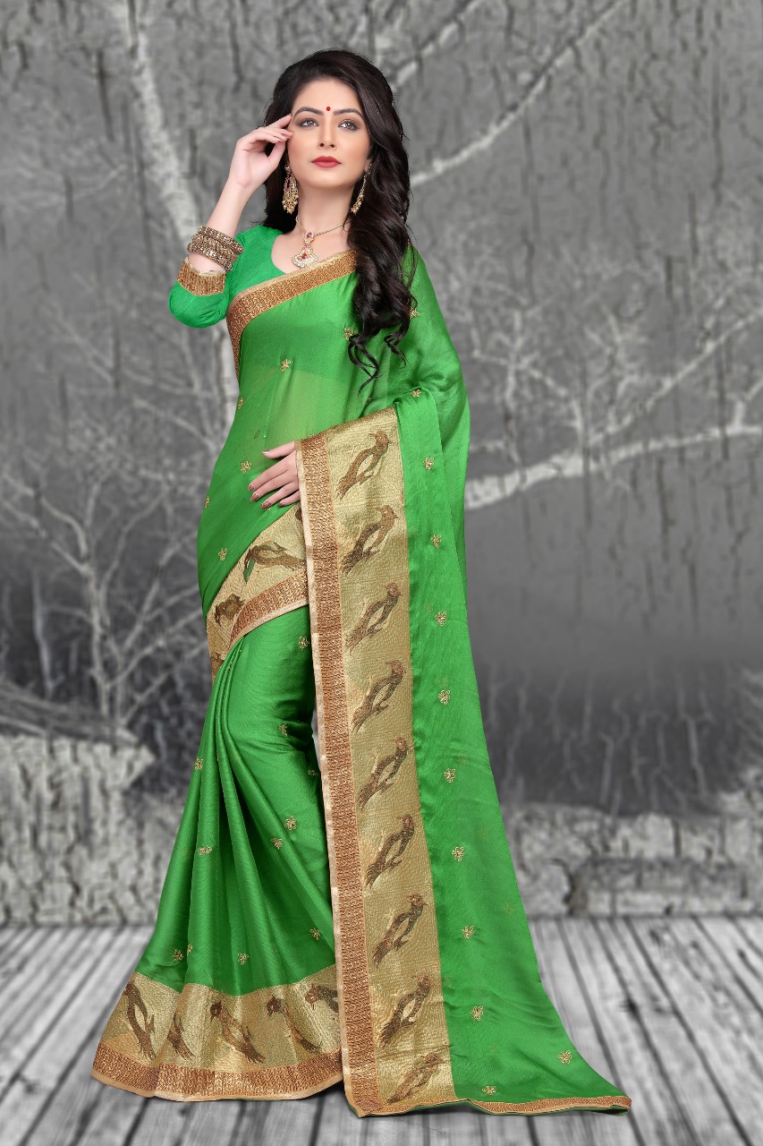 New catlog by Right one . Catlog name - *ICLOUD* Moss chiffon with blouse Rate 495/- Set to set . GST 5 Percent Extra. Delivery date -25-04-18. |