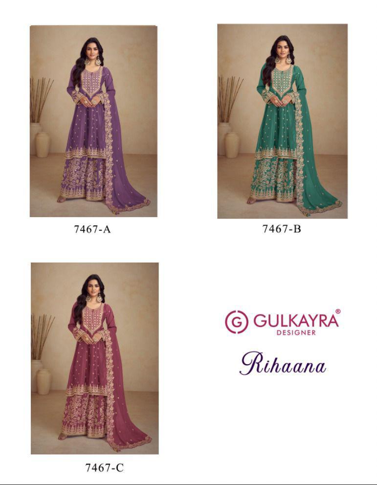 Buy Online Rihaana By Gulkayra Designer Plazo Suits 3 Pcs of Full Catalogue at Wholesale Price. Looking for Rihaana By Gulkayra Designer Plazo Suits Full Catalouge at Best Price? Buy Now Rihaana By Gulkayra Designer Plazo Suits at Wholesale Rate of Rs 8085 with Total 3 Pcs from authroized dealer and supplier of Brand. Cost of Each piece is just only Rs 2695 which is very low and affordable price to resale the product in your retail store ,This is Surat based Wholesale Supplier & Dealer of Brand. Click on Brand name to Know more about Brand's products.Call or Whatsapp on 9898838984 for booking or enquiry
