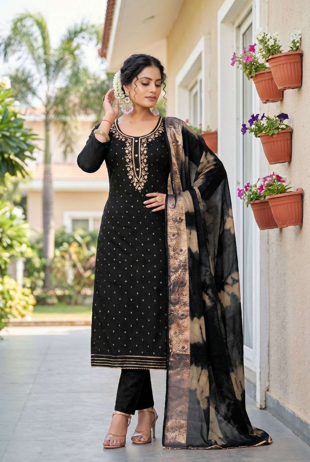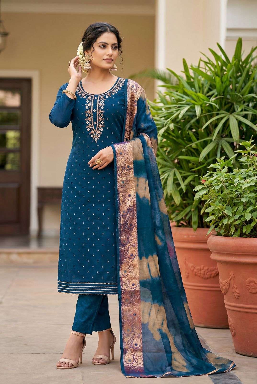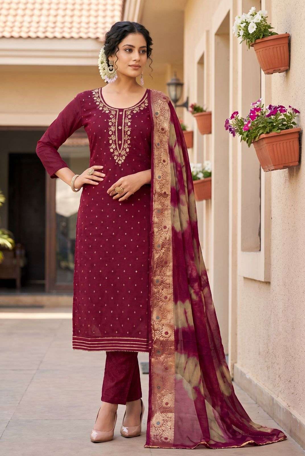 TOP-MODAL BUTTI WITH HANDWORK DUPATTA-ORAGANJA BANARSHI BOTTOM/INNER-HEAVY SENTOON