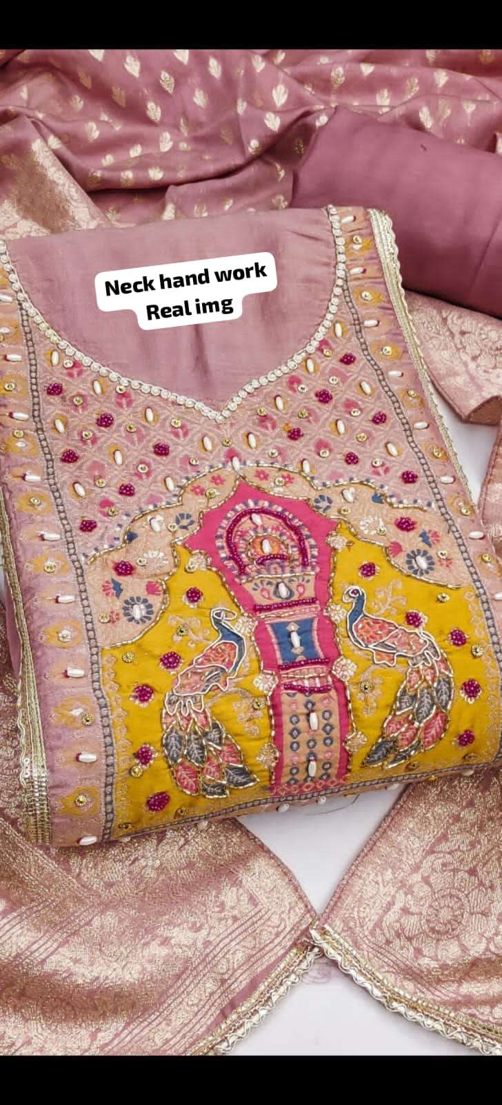 TOP-GLASS P V SIMMAR COTTON SILK WITH HANDWORK DUPATTA-PURE BANARSHI DUPATTA BOTTOM-RAYON INNER-COTTON