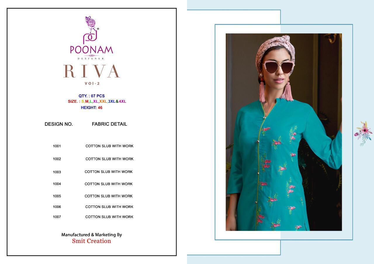 Buy Online Riva Vol 2 By Poonam Designer Cotton Embroidered Kurtis Wholesale Supplier And Dealer Surat 7 Pcs of Full Catalogue at Wholesale Price. Looking for Riva Vol 2 By Poonam Designer Cotton Embroidered Kurtis Wholesale Supplier And Dealer Surat Full Catalouge at Best Price? Buy Now Riva Vol 2 By Poonam Designer Cotton Embroidered Kurtis Wholesale Supplier And Dealer Surat at Wholesale Rate of Rs 2030 with Total 7 Pcs from authroized dealer and supplier of Poonam designer Brand. Cost of Each piece is just only Rs 290 which is very low and affordable price to resale the product in your retail store ,This is Surat based Wholesale Supplier & Dealer of Poonam designer Brand. Click on Brand name to Know more about Poonam designer Brand's products.Call or Whatsapp on 9898838984 for booking or enquiry